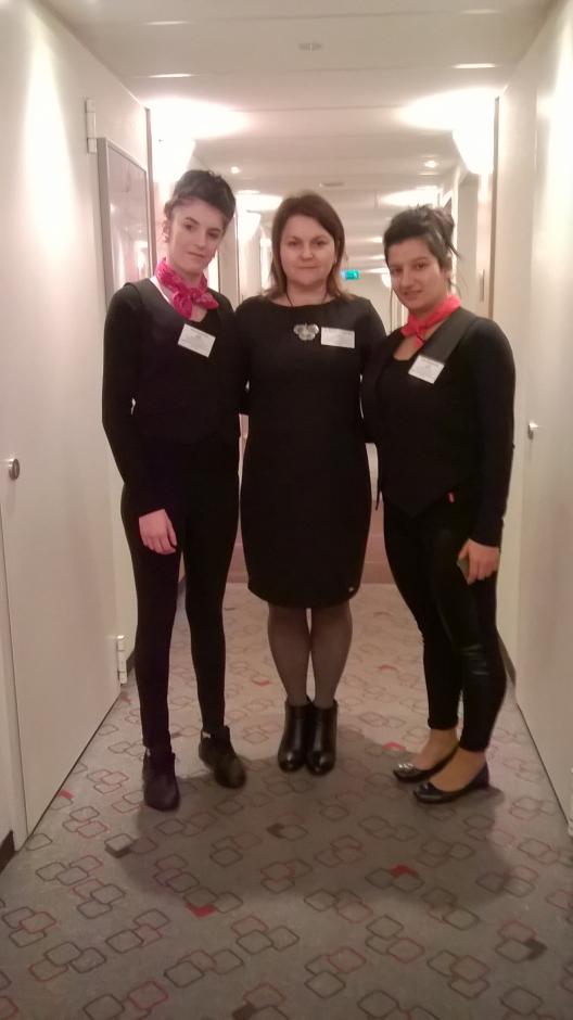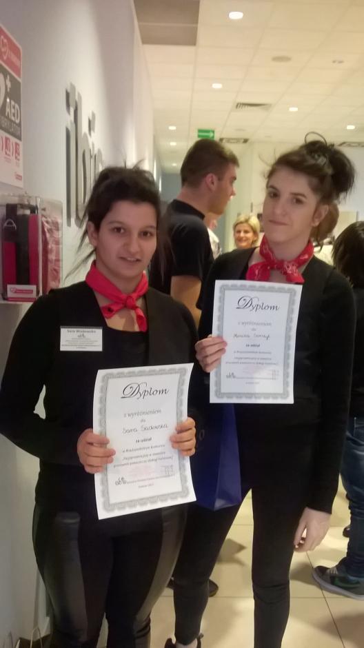 W dniach 20-21 luty 2017r. uczennice Szkoły Zawodowej Sara Sadowska i Monika Sordyl uczestniczyły w Międzyszkolnym Konkursie Hotelarskim „Najsprawniejszy w zawodzie – Pracownik Pomocniczy Obsługi Hotelowej”, który odbył się w Krakowie. W konkursie oprócz nas brali udział uczniowie ze szkół zawodowych z Rzeszowa, Kielc, Krakowa i Chrzanowa. Konkurs składał się z dwóch etapów: w pierwszym dniu zadaniem uczestników było przygotowanie nakrycia stołu zgodnie z menu do kolacji dla dwóch osób. Ocenie podlegała: dekoracja, estetyka stołu, dobór odpowiedniej zastawy i szkliwa, umiejętność składania serwetek, strój uczniów. Drugi etap konkursu odbył się w hotelu „Ibis”. Zadaniem uczniów było przygotowanie jednostki mieszkalnej po opuszczeniu przez gościa. Kryteria oceny dotyczyły: procedury sprzątania pokoju i łazienki po wyjeździe gościa, prawidłowego doboru i zmiany bielizny pościelowej, właściwej organizacji pracy, odpowiedniego stroju. Poziom był bardzo wyrównany, uczennice Monika i Sara bardzo dobrze się zaprezentowały, otrzymały dyplomy z wyróżnieniem i drobne nagrody. Przez udział w konkursie uczennice miały okazję zamieszkać w 3* hotelu, zjeść śniadanie hotelowe i pyszny obiad. Pobyt w hotelu pozwolił zapoznać się z organizacją pracy, poczuć się pracownikiem hotelu oraz zintegrować się z uczniami z innych szkół o tym samym profilu. Do konkursu przygotowała uczennice p. Renata Knapczyk, gratuluję i dziękuję dziewczynom. Życzę powodzenia.