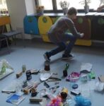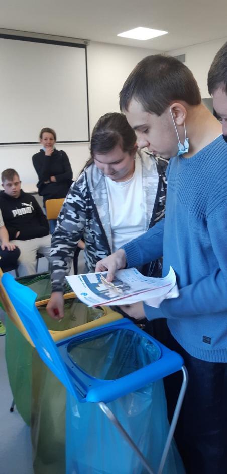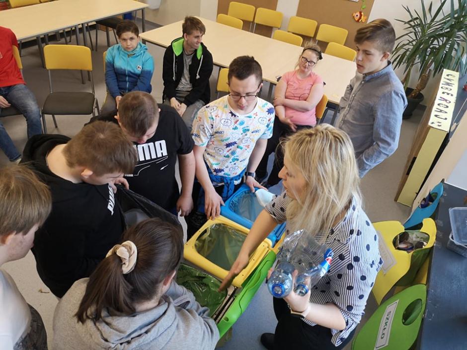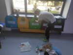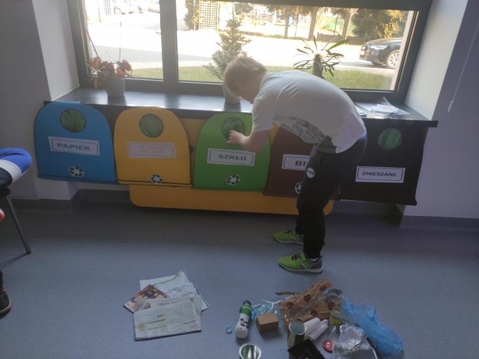 W trakcie wspólnej rozmowy ustalili, jak dbać o środowisko. Uczniowie dowiedzieli się dlaczego tak ważna jest segregacja odpadów, poznali korzyści płynące z tych działań. Ustalili czym są śmieci i co należy z nimi robić, aby zamienić je na surowce wtórne. Zapoznali się z przeznaczeniem pojemników na odpady. Samodzielnie segregowali śmieci. Dowiedzieli się także, jak postępować z odpadami niebezpiecznymi. Na koniec wzięli udział w ekologicznej grze dydaktycznej.