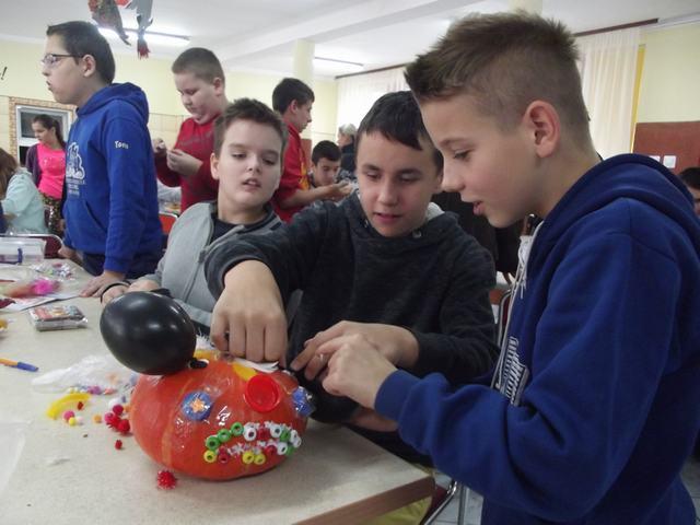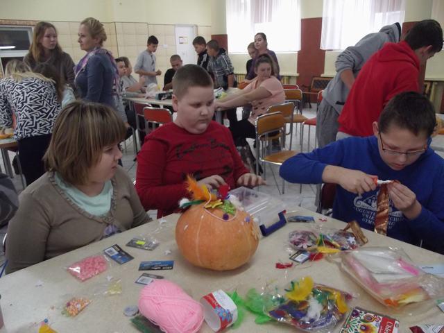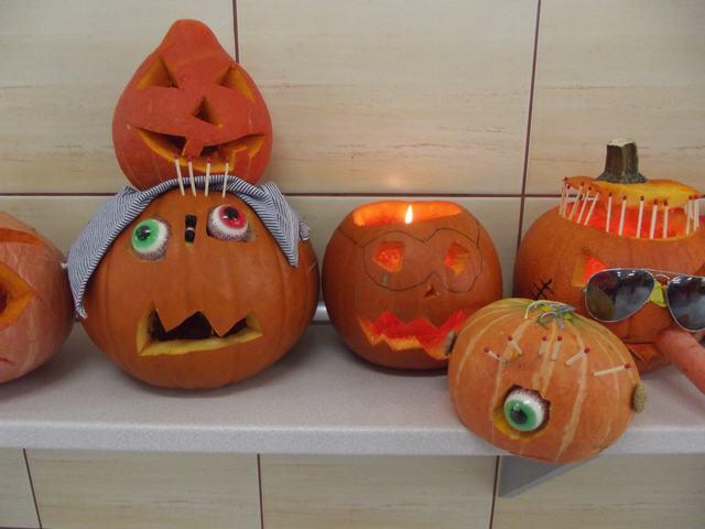 Dnia 28 października 2016 r. uczniowie Szkoły Podstawowej i Gimnazjum wzięli udział w niecodziennej lekcji języka angielskiego. W czasie zajęć uczniowie oglądali prezentację dotyczącą Dnia Halloween, rozwiązywali krzyżówki i rebusy w języku angielskim. Wiele emocji dostarczył wszystkim konkurs na najciekawiej ozdobioną dynię. Pomysły naszych uczniów przerosły nasze najśmielsze oczekiwania. Bardzo trudno było podjąć decyzję , która dynia jest najpiękniej udekorowana, dlatego wyeksponowano wszystkie prace konkursowe w pokoju nauczycielskim i grono pedagogiczne drogą głosowania wyłoniło trzy najbardziej pomysłowe.