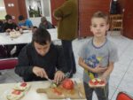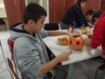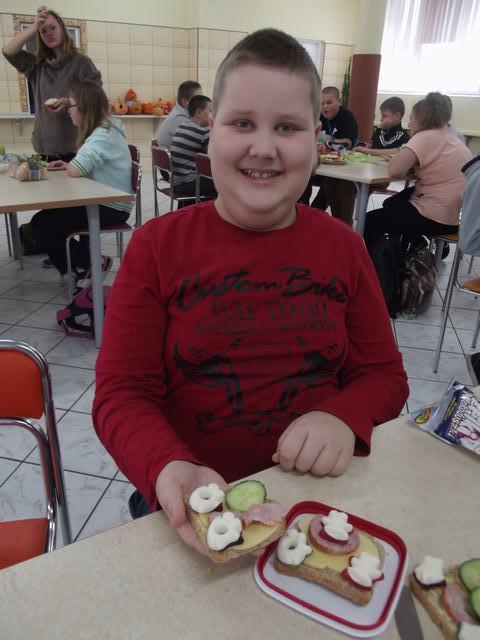 Kolejnym zadaniem uczniów było przygotowanie halloweenowej przekąski. Podczas tego zajęcia wszystkie klasy wykazały się kreatywnością. Powstały nie tylko straszne ale również zdrowe i smaczne kanapki. Efekty pracy uczniów można zobaczyć na poniższych zdjęciach.
