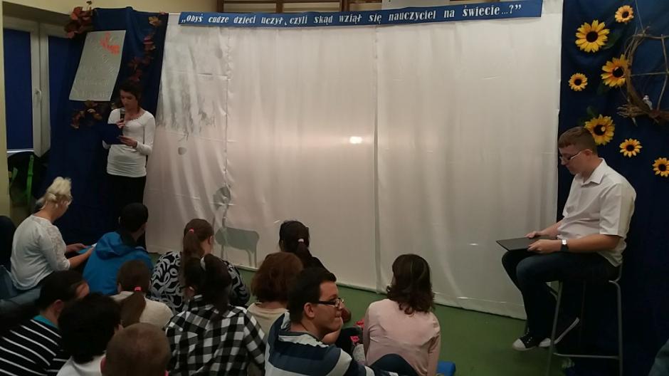 „Obyś cudze dzieci uczył – czyli skąd wziął się nauczyciel na świecie?” – pod takim hasłem świętowano Dzień Edukacji Narodowej w naszej szkole. Uczniowie przygotowali pracownikom oświaty nie lada niespodziankę w postaci zabawnej części artystycznej.