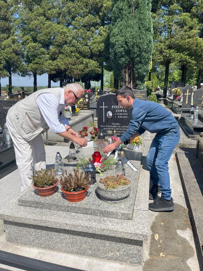 W związku ze zbliżającymi się imieninami Patronki Szkoły, 9 maja 2024r. uczniowie klasy IIIb SPdP wraz z członkami Samorządu Uczniowskiego udali się na grób Zofii Posmysz. Celem wyjścia było wykonanie prac porządkowych, złożenie przygotowanej przez uczniów okolicznościowej wiązanki oraz zapalenie znicza. Dużym wyróżnieniem dla nas było spotkanie przy grobie siostrzeńca Zofii Posmysz, który podzielił się z nami wspomnieniami z życia Patronki. Był to moment wspólnej refleksji i zadumy.