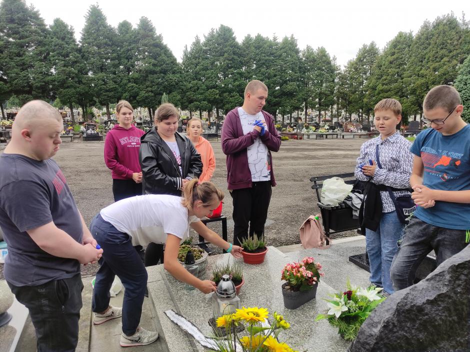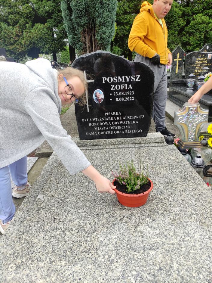 We wrześniu uczniowie naszej szkoły udali się na Cmentarz Komunalny w Oświęcimiu. Wykonali prace porządkowe na grobie Patronki Szkoły. Zapalili znicz oraz złożyli wcześniej zasadzone kwiaty będące wyrazem naszej wdzięczności i pamięci.