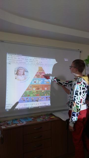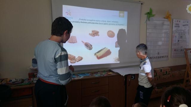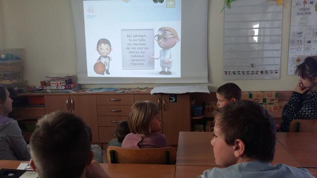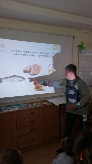– obejrzeli prezentację multimedialną, której bohaterowie: Pan doktor i chłopiec opowiedzieli, jak należy się odżywiać, aby zawsze czuć się dobrze i nie chorować,