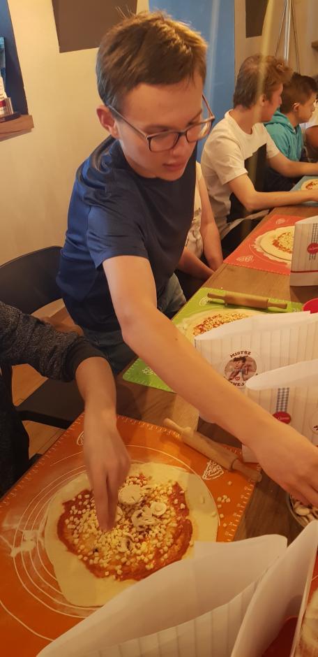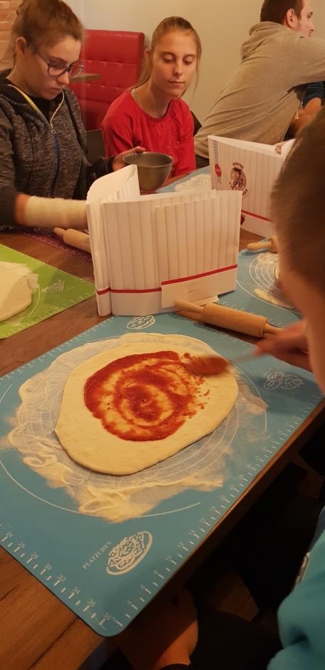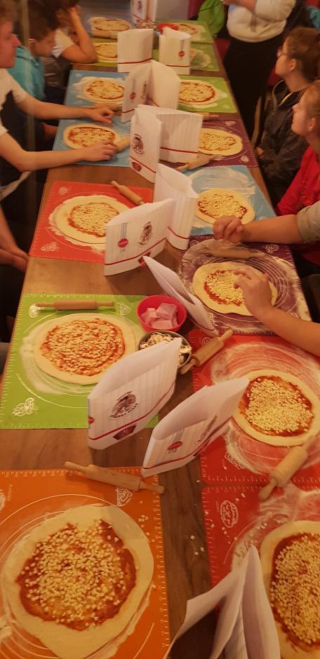 Każdy lubi dobrą pizzę, a jeśli jeszcze można ją samodzielnie przygotować to już super sprawa! W dniu 26 października klasa IIc i IIIa brały udział w warsztatach kulinarnych w pizzerii Da Grasso w Oświęcimiu. Poznaliśmy tajniki przygotowania włoskiej pizzy, nazwy składników i sposób jej wykonania. Było to bardzo emocjonujące! Na koniec nasze pizze wylądowały w piecu, a my z niecierpliwością czekaliśmy na degustację… i opłaciło się bo było pysznie…!!! W kolejnych dniach w warsztatach wzięli udział uczniowie pozostałych klas. Wszyscy byli zachwyceni 😉
