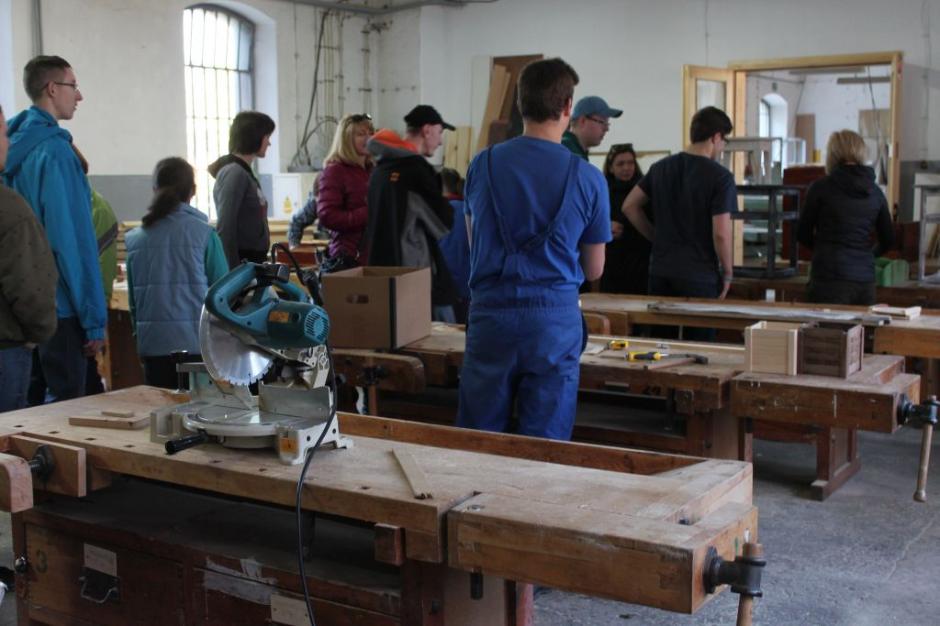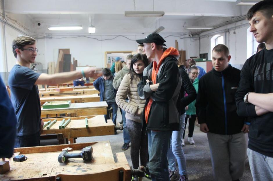 W dniu 22 kwietnia uczestniczyliśmy w dniu otwartym Zespołu Szkół Zawodowych Towarzystwa Salezjańskiego. Mogliśmy zobaczyć sale lekcyjne, warsztaty, boiska, uczniowie tej szkoły chętnie nas oprowadzali odpowiadali na wszystkie pytania. Największym zainteresowaniem cieszyły się warsztaty a w szczególności stolarnie. Byliśmy pod wrażeniem wielkości warsztatów oraz przedmiotów tam wykonywanych. Zobaczyliśmy też suszarnie drewna oraz zdobyliśmy kilka cennych informacji o rodzajach drewna i ich przeznaczeniu. Mieliśmy też okazję wystąpić w szkolnej telewizji, a Staszek Sroka wziął udział w prawdziwym wywiadzie. Całe wydarzenie uświetniła szkolna orkiestra, która grała przed szkołą, oddając tym samym prawdziwy klimat szkoły salezjańskiej. Na zakończenie spotkania otrzymaliśmy słodki poczęstunek.