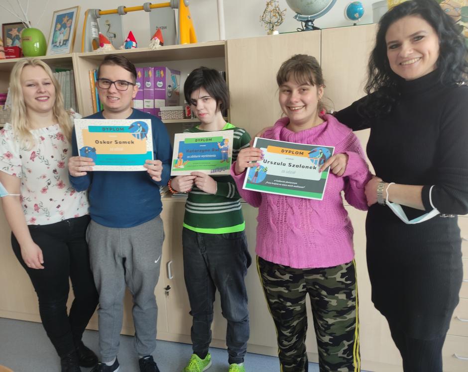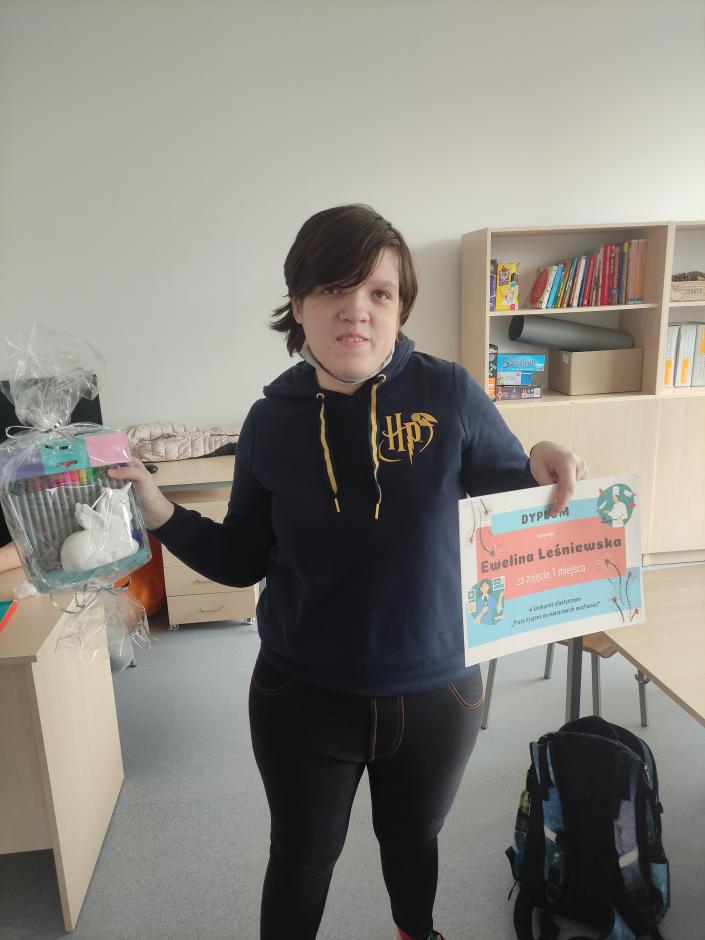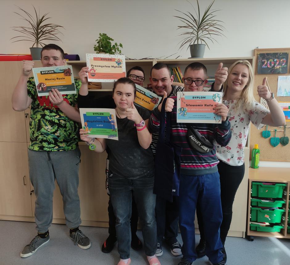 Uczniowie naszej szkoły wzięli udział w Ogólnopolskim Konkursie Plastycznym pod hasłem „Praca krojona na miarę moich możliwości” organizowanym przez Specjalny Ośrodek Szkolno – Wychowawczy im. Anny Karłowicz w Pułtusku. Zgodnie z regulaminem konkursu jury wybrało pracę jednego uczestnika, który będzie reprezentował naszą szkołę w kolejnym etapie – Ewelina Leśniewska klasa 2b SPdP – GRATULUJEMY!. Ponadto jury postanowiło przyznać wyróżnienia. Wszyscy uczestnicy konkursu otrzymali dyplomy, gratulacje, a wyróżnieni nagrody.
