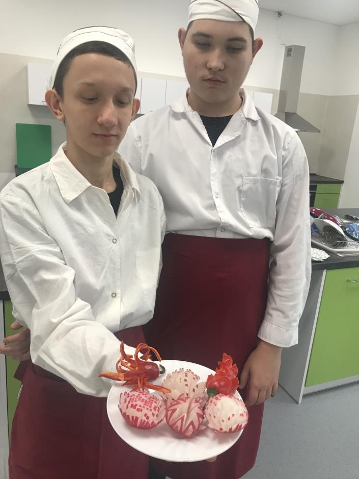 Wszyscy bardzo się angażowali w przydzielone zadania. Oprócz głównych potraw skupili się również na ich dekoracji. Uczniowie poznali podstawy carvingu, dlatego też na talerzach znalazła się dekoracja z warzyw. Efekt końcowy był zadowalający, stoły wyglądały pięknie a potrawy bardzo apetycznie. Biorąc udział w konkursie uczniowie podnieśli swoją samoocenę i wiarę                     we własne możliwości.