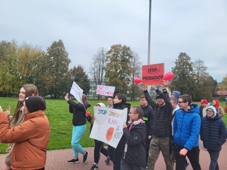 Przemocy mówimy STOP. wyraziliśmy swój sprzeciw Dnia 21.10.2025r. cała szkoła wzięła udział w happeningu, który miał na celu wyrażenie sprzeciwu dla przemocy wobec dzieci i młodzieży.