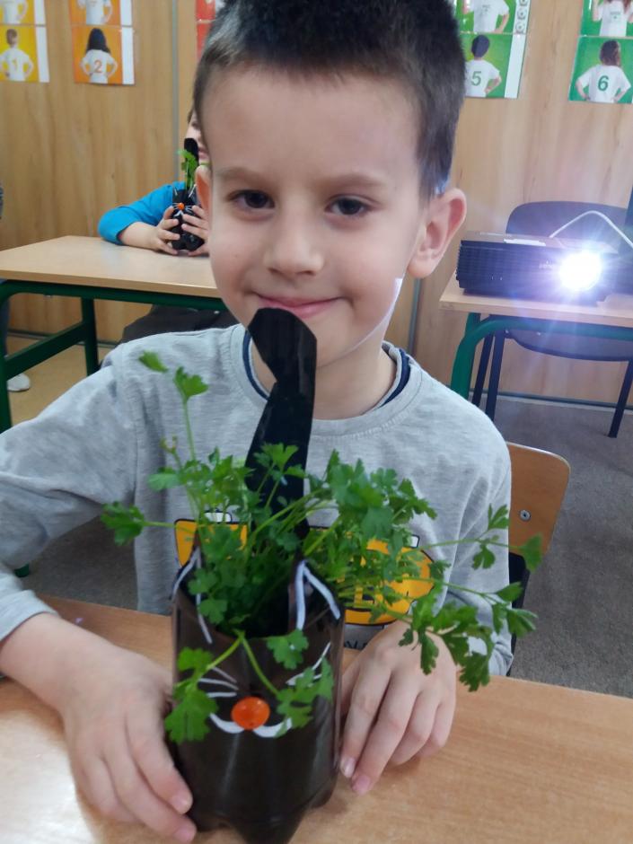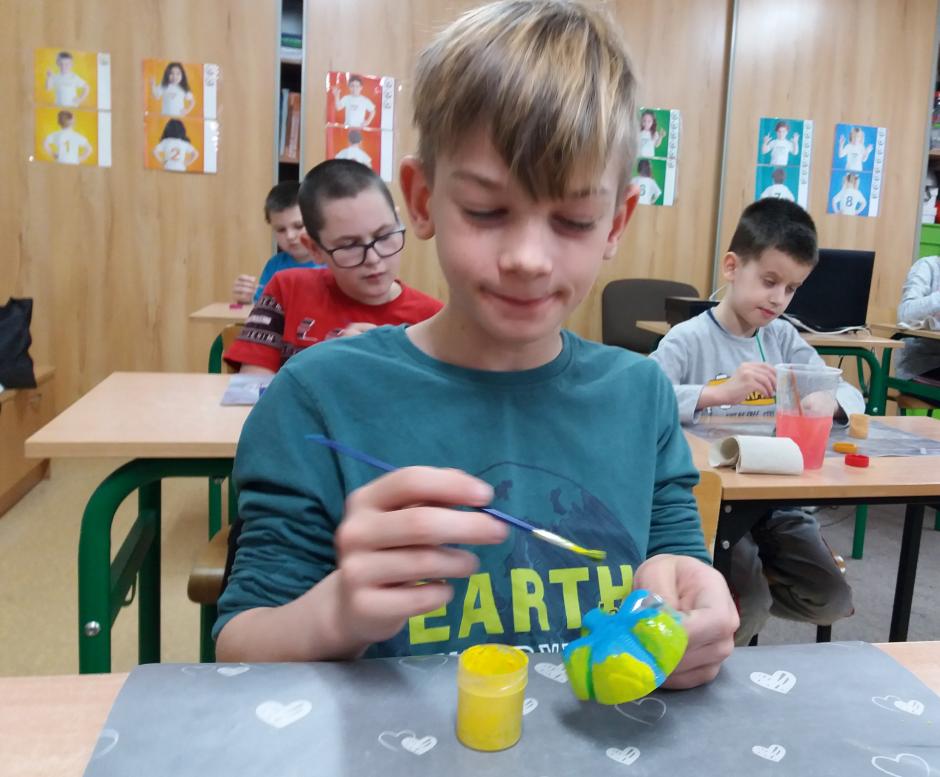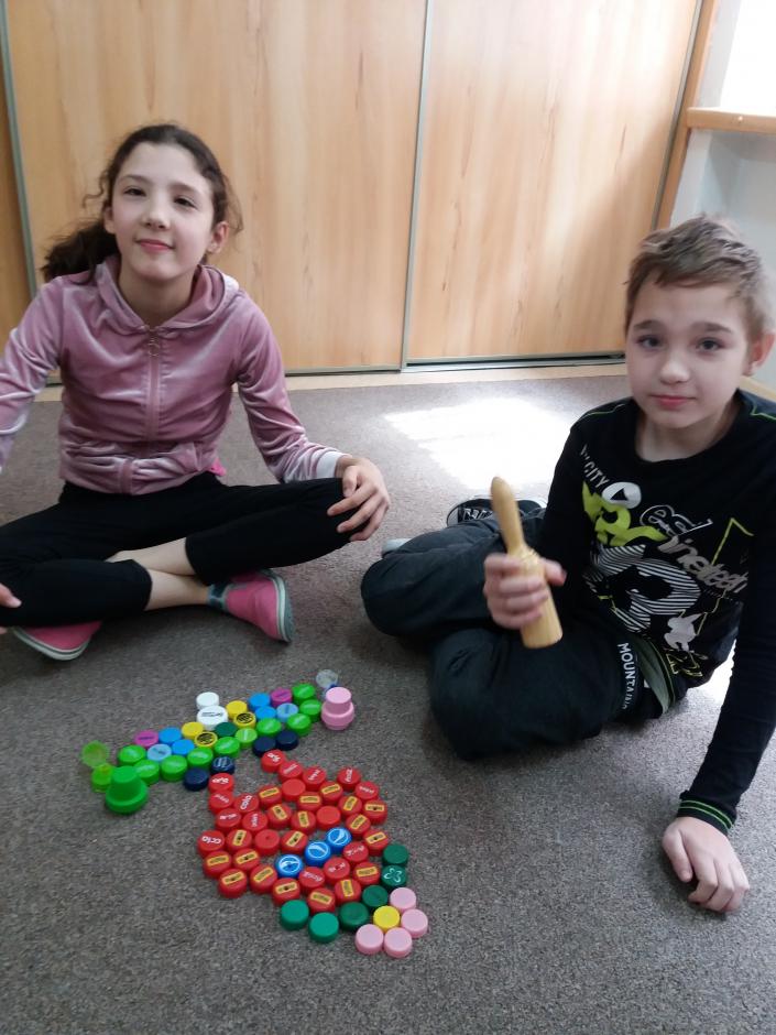 Tegoroczne zajęcia przebiegały pod hasłem „Przywróćmy naszą Ziemię”. Uczniowie na podstawie przygotowanej prezentacji rozmawiali o tym, jak piękna, fascynująca i ważna dla każdego człowieka jest nasza planeta i jak na co dzień powinniśmy o nią dbać. Następnie wszyscy przystąpili do działania praktycznego, poznając niektóre sposoby wykorzystania materiałów przeznaczonych do recyklingu. Z butelek plastikowych uczniowie wykonali wiosenne kwiaty, grzechotki i nietypowe doniczki „kotki”, w których posadzili zieloną roślinkę. Z kolorowych nakrętek tworzyli różne obrazki i mandale.