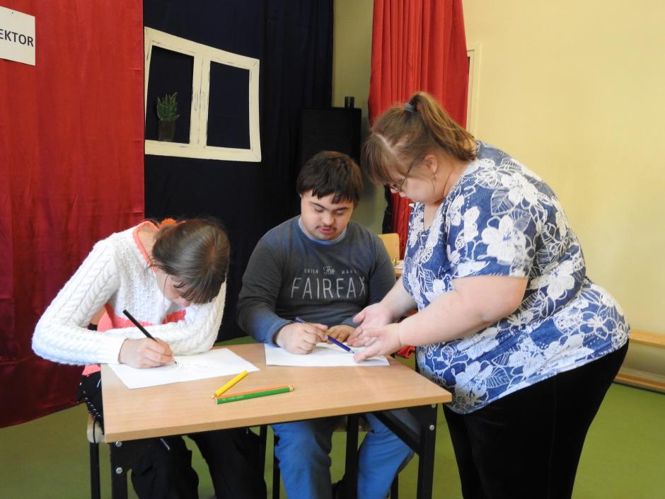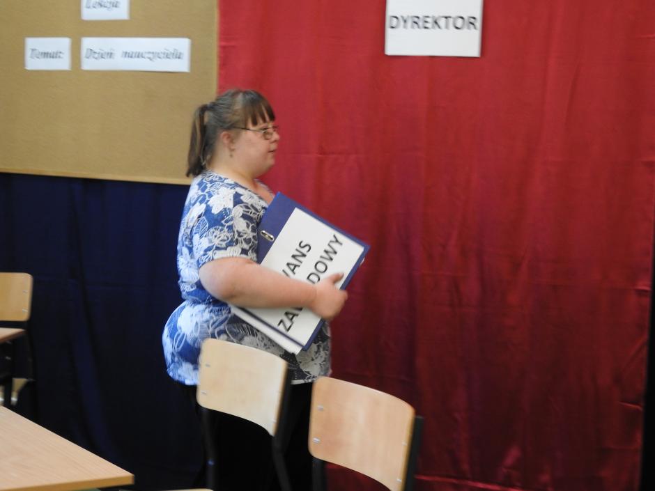W dniu 12 października spotkaliśmy się z okazji nadchodzącego Święta Dnia Komisji Edukacji Narodowej popularnie zwanego dniem nauczyciela. Wiadomo jednak, że jest to święto wszystkich pracowników szkoły. Zebrani na sali gimnastycznej zobaczyli przedstawienie w wykonaniu uczniów Szkoły Przysposabiającej do Pracy. W kilku scenach pokazana zastała praca nauczyciela, który cały czas musi się doskonalić i niczym wytrawny gracz w gry komputerowe zdobywać nowe umiejętności. Wykonuje szereg zadań zdobywając „punkty”, a dzięki temu przechodzi na wyższy „level” czyli uzyskuje kolejny stopień awansu zawodowego. Nauczyciel na początku jest stażystą, potem nauczycielem kontraktowym, następnie nauczycielem mianowanym, a na końcu nauczycielem dyplomowanym. Nie jest to jednak droga łątwa…, ale daje dużo satysfakcji i energii do działania. I tego też życzymy wszystkim nauczycielom oraz pozostałym pracownikom szkoły.