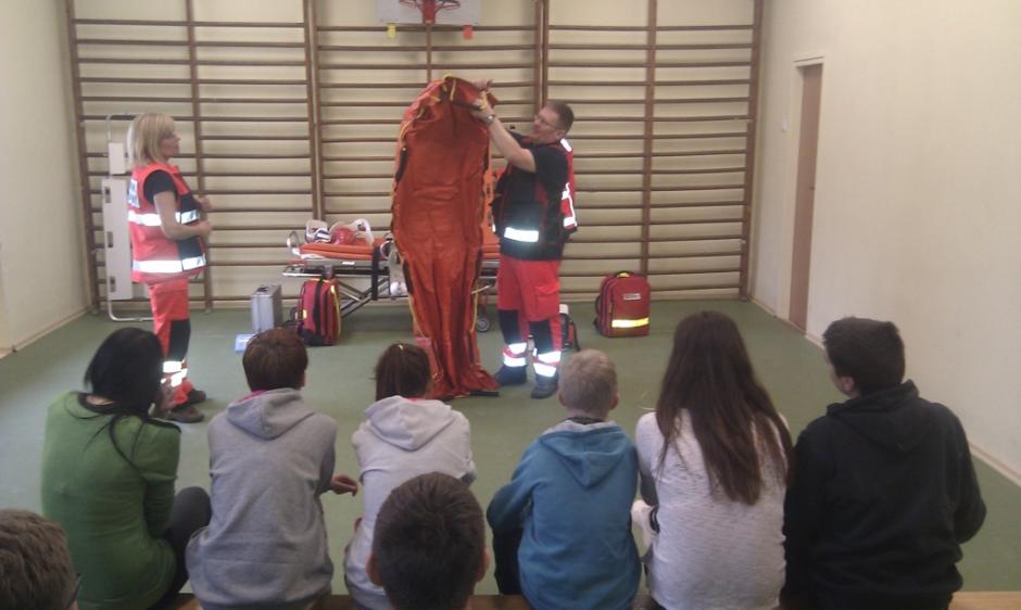 Uczniowie uczestniczyli w szkoleniu z dużą uwagą i skupieniem, a odważniejsi udzielali odpowiedzi na zadawane przez ratowników pytania. Na zakończenie spotkania uczniowie otrzymali od ratowników pochwałę za wiedzę, postawę oraz zaangażowanie.