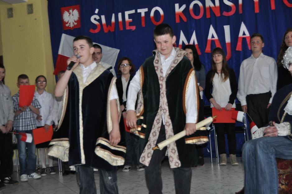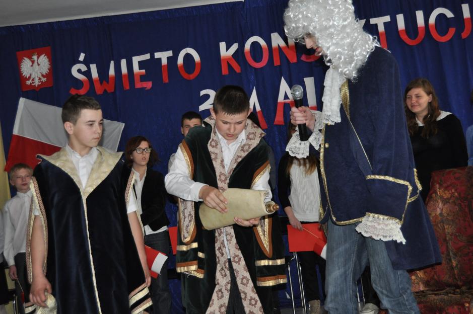 30 kwietnia 2013r. uczniowie szkoły podstwowej i gimnazjum przygotowali występ upamiętniający rocznicę uchwalenia