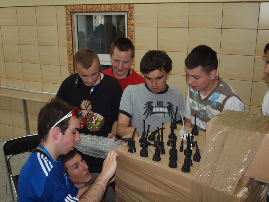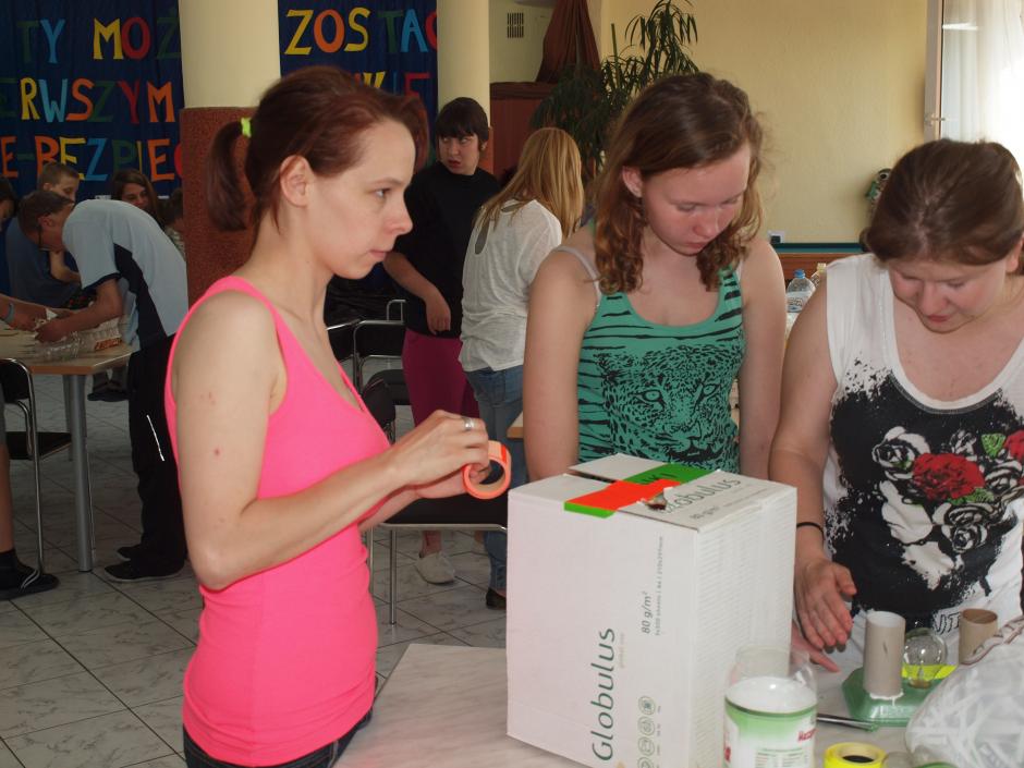 21 maja w jadalni internatu pracowicie, w pocie czoła, wychowankowie pod bacznym okiem wychowawców,