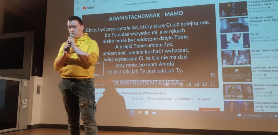 21.03 obchodzimy pierwszy dzień wiosny zwany również Dniem Wagarowicza. Młodzież z SOSW bardzo lubi chodzić do szkoły w związku z czym nie było mowy o opuszczeniu dnia w szkole. Na tę okoliczność uczniowie SPdP i BS zgromadzili się dość licznie w szkolnej auli aby powitać wiosnę radosnym śpiewaniem. W repertuarze karaoke znalazły się popularne piosenki śpiewane po polsku, ale byli i tacy, którzy zmierzyli się ze śpiewem po angielsku i włosku 😉 Publiczność nagradzała wykonawców gromkimi brawami, relaksując się w miłym towarzystwie koleżanek i kolegów. Dodatkowo uczniowie klas BS uczestniczyli w projekcji filmu.
