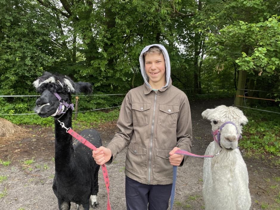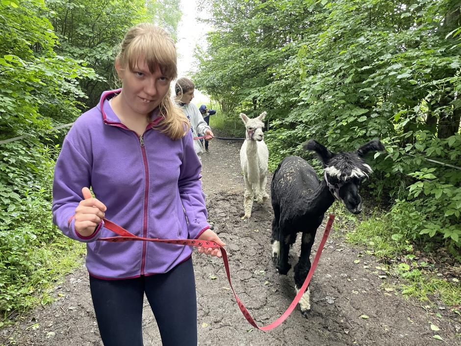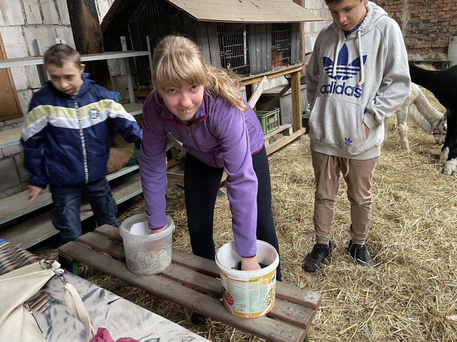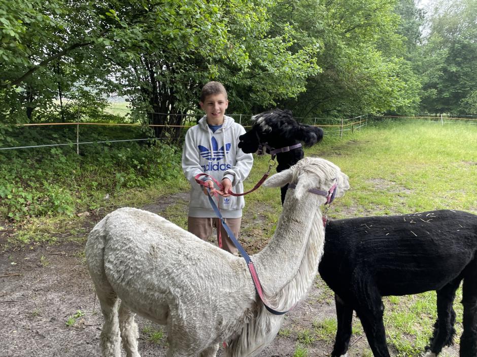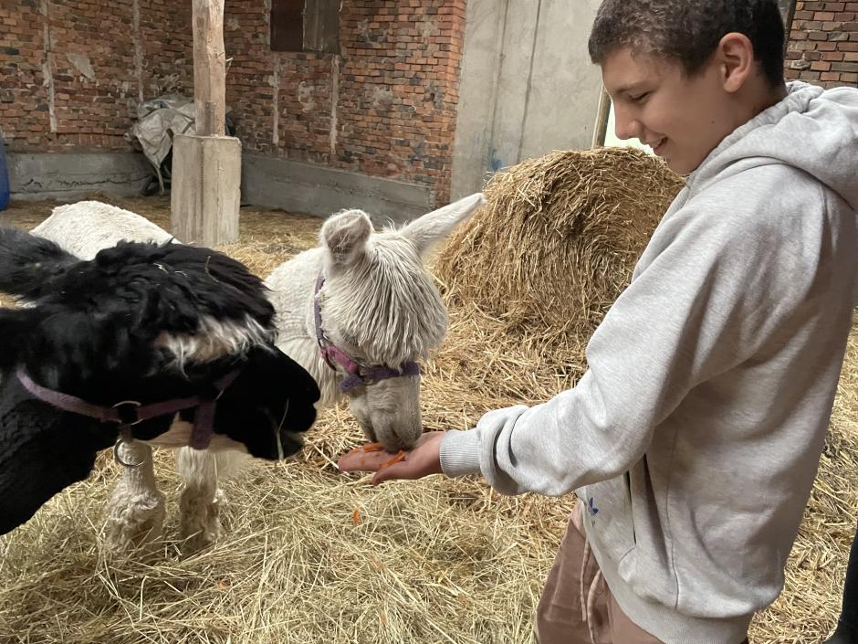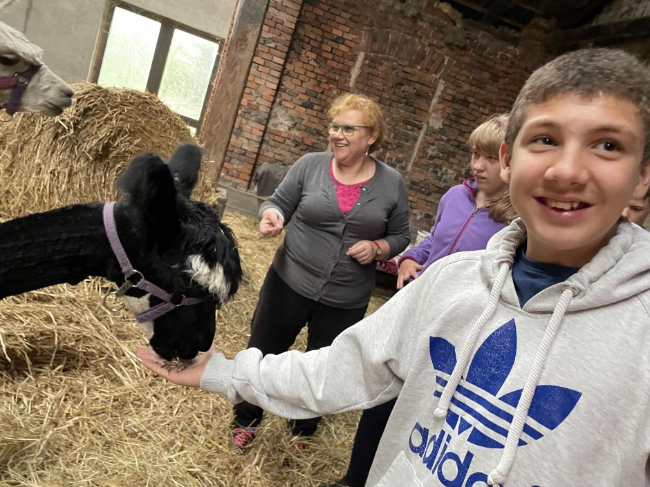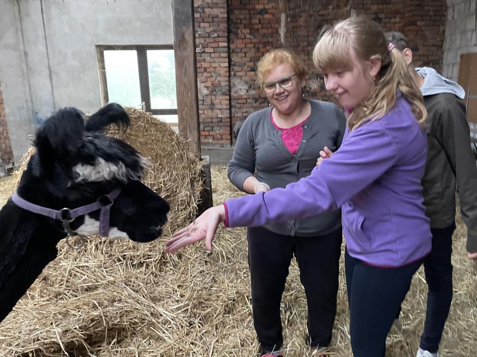 W piątkowy ranek klasy 7d i 8b w ramach akcji „Dzień pustej klasy” wybrały się do zaprzyjaźnionej stadniny „IKARION” w Borku na spacer z Alpakami.