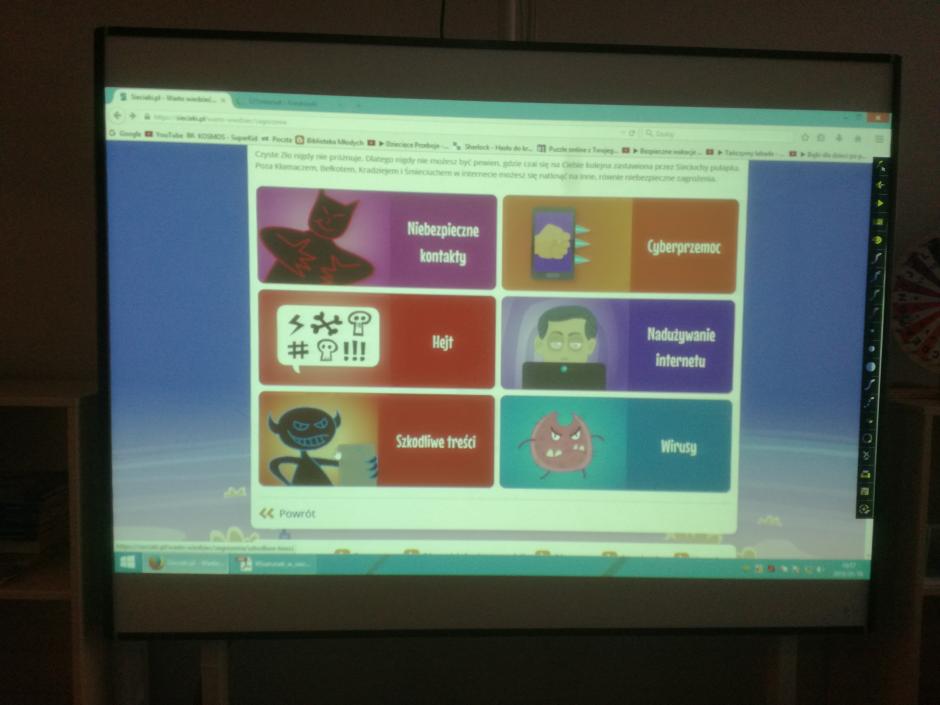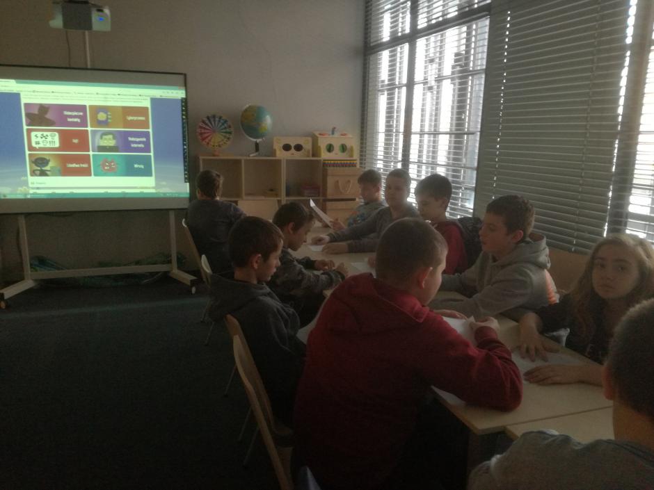 W trakcie „burzy mózgów” zdefiniowali pojęcie cyberprzemocy, odróżnili ją od innych rodzajów przemocy oraz wyznaczyli jej wiodące cechy. Następnie na podstawie materiałów multimedialnych rozważyli kwestię zagrożeń dotyczących nieprzemyślanego nawiązywania i rozwijania internetowych znajomości oraz publikacji zdjęć i filmików, które mogą stać się powodem naruszenia prawa.