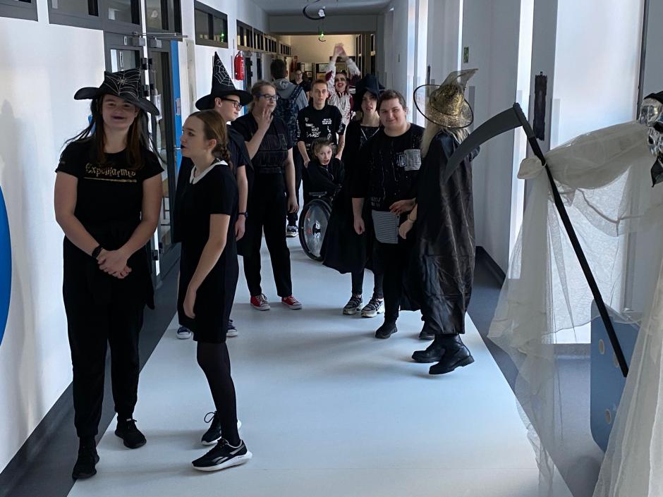30 listopada 2023r. nasze szkolne korytarze zamieniły się w nietypowe, magiczne miejsce. Tego dnia odbyły się szkolne andrzejki. Uczniowie w samodzielnie przygotowanych kreacjach wzięli udział w różnorodnych atrakcjach zorganizowanych przez Samorząd Uczniowski. Wykonywali pamiątkowe fotografie na tle tematycznych fotościanek. W salonie wróżb, z przymrużeniem oka, poznawali swoją przyszłość. Tańczyli w rytm największych hitów podczas dyskoteki, a także uzupełniali swoje stylizacje niebanalnymi makijażami oraz tatuażami. Gościliśmy także w szkolnej kawiarence „Babeczka”, która profesjonalną obsługą, smacznymi nowościami oraz niezastąpionym ciastem i napojami stworzyła atmosferę sprzyjającą relaksowi oraz wspólnym rozmowom. Dzień ten zakończyliśmy seansem filmowym.