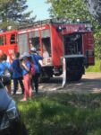Gdy dopadło nas zmęczenie zjedliśmy pyszne kiełbaski na papierowych talerzykach i wypiliśmy herbatkę we własnych kubkach, aby jak przystało na prawdziwych ekologów, nie zanieczyszczać świata plastikowymi kubkami, widelcami….  Mogliśmy także podszkolić się z pierwszej pomocy, której uczyli nas profesjonaliści-strażacy.