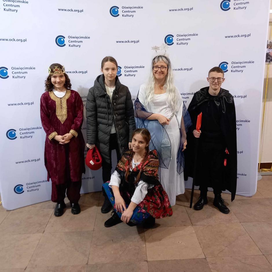 W dniu 11.01.2024r. w OCK odbył się XVII Konkurs Kolęd Polskich i Pastorałek „Hej kolęda, kolęda”, w którym wzięli udział nasi uczniowie. Utworzyliśmy grupę kolędniczą, która zaprezentowała się na scenie dwoma pastorałkami. Anna Kowalczyk wykonała pastorałkę pt. „Gwiazda”, a Emilia Chmiel „Kolędę dla nieobecnych”. Na końcu grupa kolędnicza zaśpiewała świąteczne życzenia. Za ten występ jury uhonorowało nas wyróżnieniem – otrzymaliśmy pamiątkową statuetkę i dyplomy. Gościliśmy również z występem na Szkolnym Konkursie Kolęd i Pastorałek w Szkole Podstawowej i otrzymaliśmy pamiątkowe dyplomy.