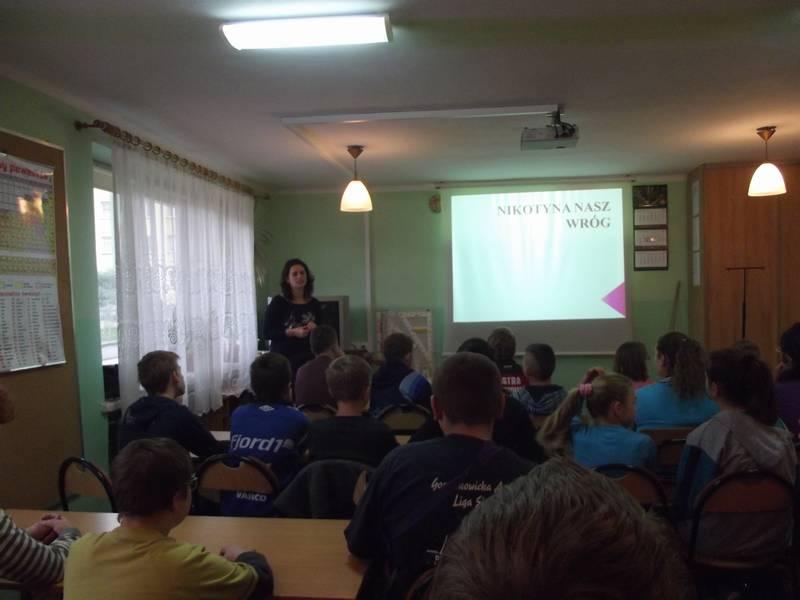 W trosce o zdrowie uczniów i przyszłych pokoleń nasza szkoła aktywnie włączyła się do międzynarodowej akcji „Rzuć Palenie”. Na spotkaniu Samorządu Szkolnego uczniowie klas 4-6 w oparciu o przygotowaną prezentację pt. „Nikotyna nasz wróg” zgłębiali wiedzę na temat szkodliwości dymu tytoniowego oraz zdrowotnych i ekonomicznych skutków palenia. Na zajęciach plastyki wykonywali plakaty zachęcające do rzucenia palenia. Młodsi uczniowie klas 1-3 uczestniczyli w zajęciach edukacyjnych w ramach realizacji programu „Nie pal przy mnie, proszę!”.