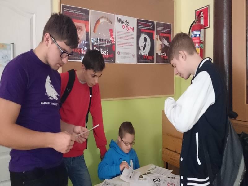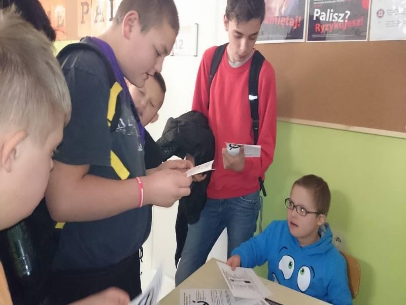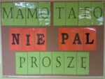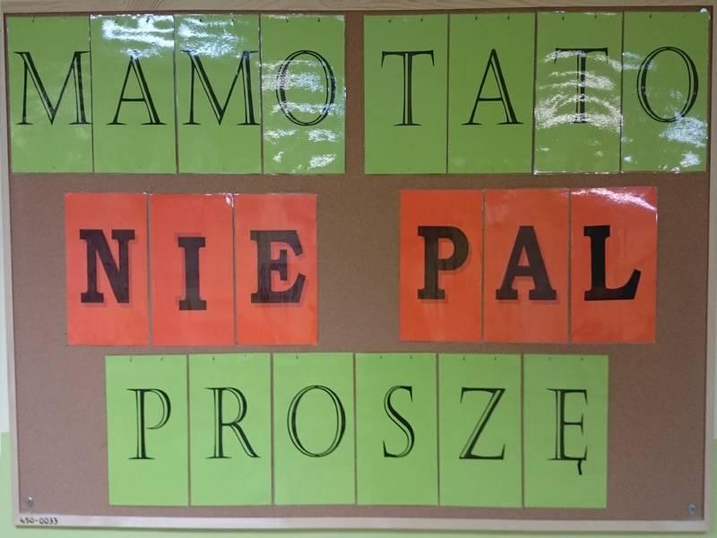W celu propagowania wśród społeczności szkolnej, rodziców i opiekunów wiedzy, na temat skutków biernego palenia przez dzieci na korytarzu szkolnym zorganizowano wystawę pt. „Mamo, tato nie pal – proszę” oraz rozpowszechniono wśród dorosłych opracowaną ulotkę.