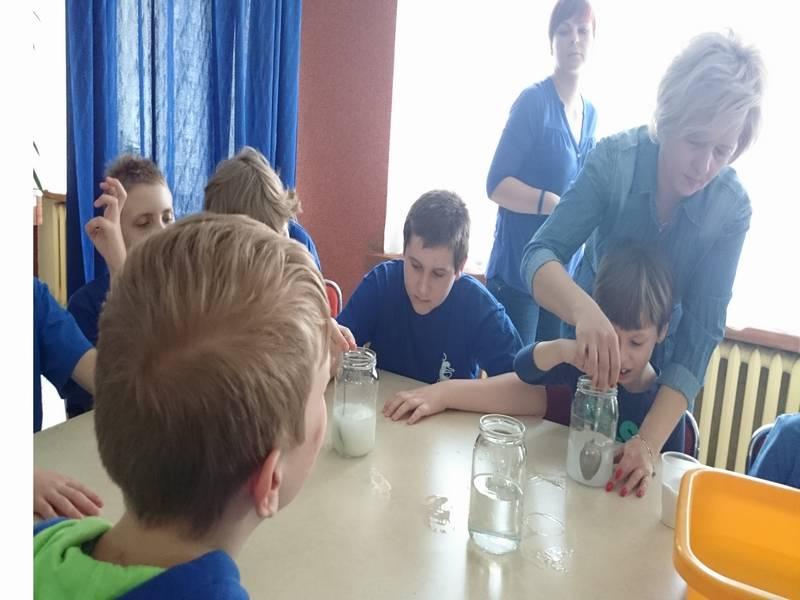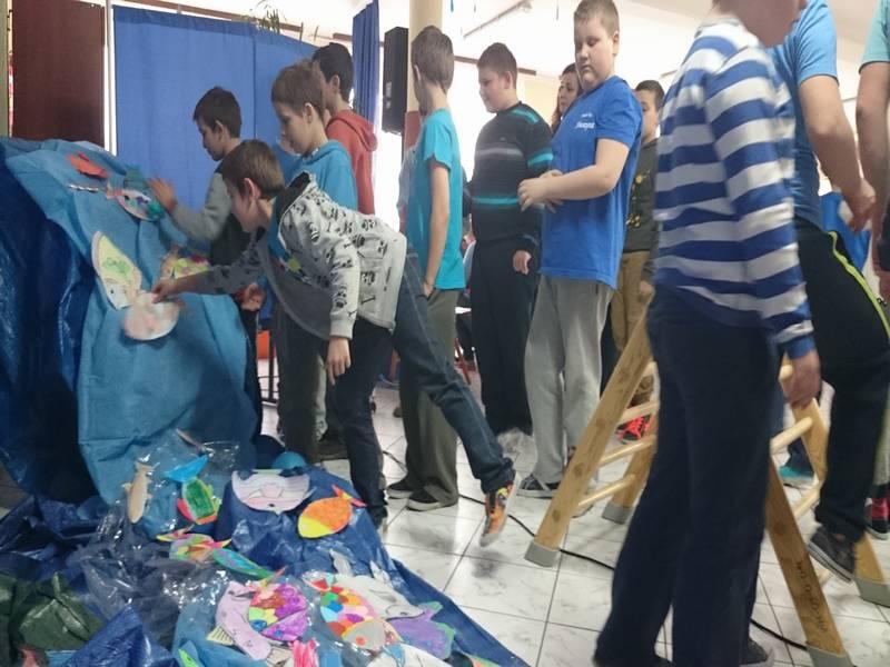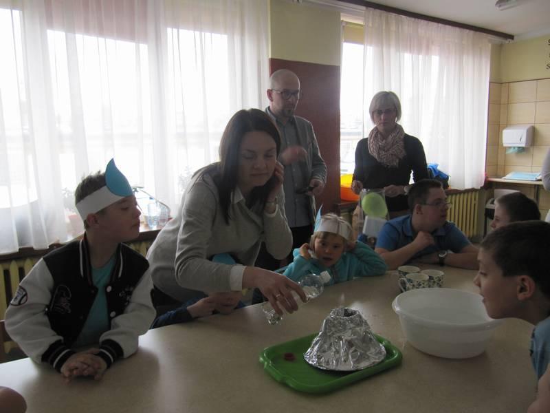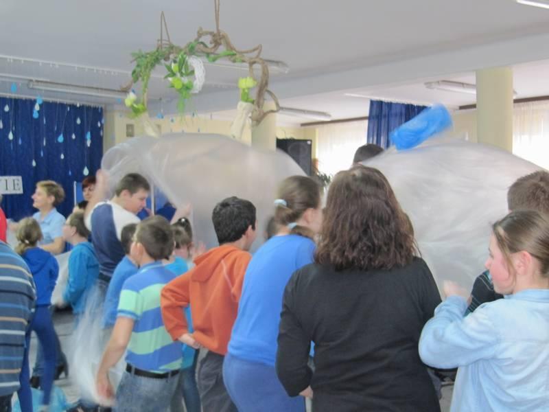 22 marca w Światowym Dniu Wody uczniowie wzięli udział zajęciach w zorganizowanych z tej okazji. Głównym założeniem tego przedsięwzięcia było poszerzenie wiedzy o wodzie oraz utrwalanie zdrowego nawyku picia wody przez uczniów naszej szkoły. W tym celu w trakcie zajęć uczniowie wysłuchali pogadanki na temat, „Komu do życia potrzebna jest woda?”. Brali udział w zabawach sensorycznych z wodą, prostych doświadczeniach i obserwacjach min.: „Dźwięki wody – posłuchaj i odgadnij”, „Jak powstaje para wodna?, „Co kryją kostki lodu?”, „Co pływa, a co tonie?”, „Czy każda woda nadaje się do picia?”, „Podwodny wulkan”. Nie zabrakło też zabaw ruchowych. Muzyka z filmu „Piraci z Karaibów”, ciekawe rekwizyty – folia malarska symbolizująca ścianę deszczu i ogromne krople deszczu wykonane z worków foliowych – dostarczyły dzieciom wielu wrażeń. Na zakończenie zajęć uczniowie udali się na ratunek „chorej rzece”. Każde dziecko wykonało kolorową rybkę, by uzdrowić rzekę. Ułożona na makiecie rzeki ławica ryb stanowiła symbol dbałości naszych uczniów o środowisko.