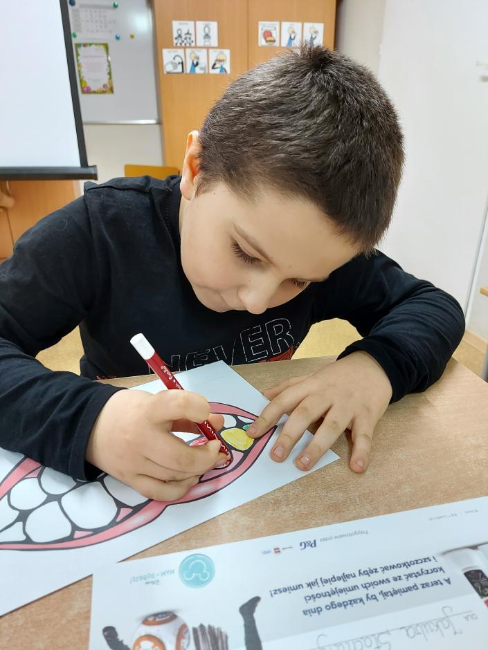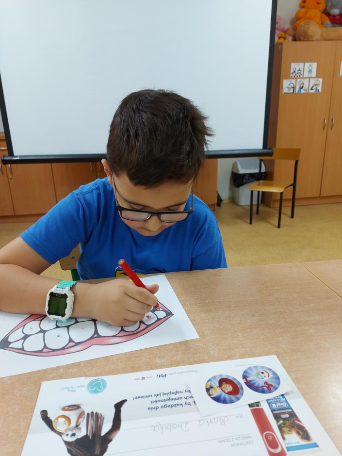 „Zdrowie zaczyna się w jamie ustnej. Świadomy pacjent, świadomy lekarz” to motyw przewodni tegorocznych zajęć.  Na zajęciach uczniowie utrwalali wiedzę i umiejętności z zakresu budowy, rodzajów i funkcji  zębów, prawidłowego ich szczotkowania, nitkowania i płukania. Poznawali jaką rolę w dbaniu o zdrowe zęby pełni odżywianie, stomatolog, dobór odpowiedniej szczoteczki czy pasty do zębów.  Nie zabrakło oczywiście tematu dotyczącego wzajemnych zależności pomiędzy kondycją jamy ustnej, chorób wywołanych brakiem prawidłowej jej pielęgnacji, a zdrowiem całego organizmu. Zajęcia miały również na celu zachęcenie uczniów do przeglądów stomatologicznych.