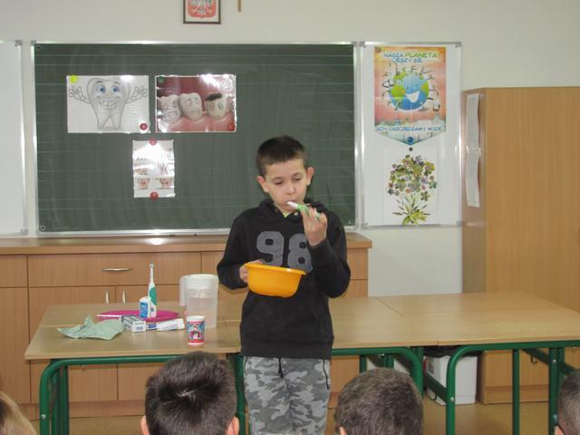 20 marca uczniowie spotkali się na zajęciach z okazji Światowego Dnia Zdrowia Jamy Ustnej. Lekcja rozpoczęła się filmem „Doktor Ząbek i Legenda Zębolandii”. Następnie na podstawie przygotowanych ilustracji dzieci odpowiadały na pytania, dotyczące treści obejrzanego filmu. W dalszej części zajęć odbyły się ćwiczenia praktyczne wraz z instruktażem, jak prawidłowo i mądrze dbać o higienę jamy ustnej i jak ważne jest to dla zdrowia człowieka.