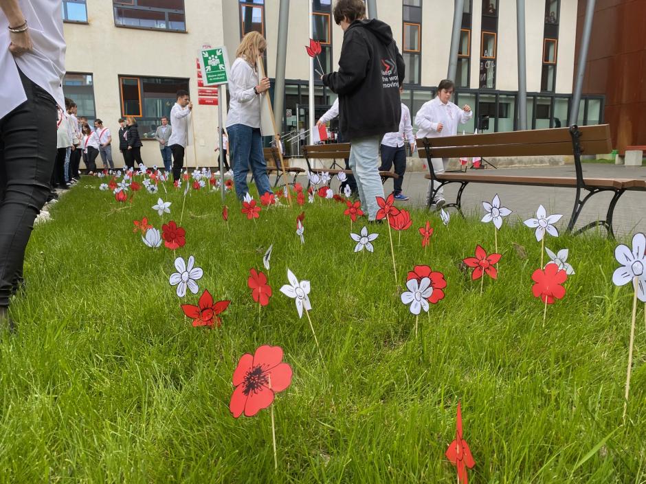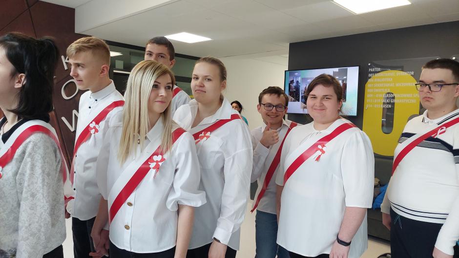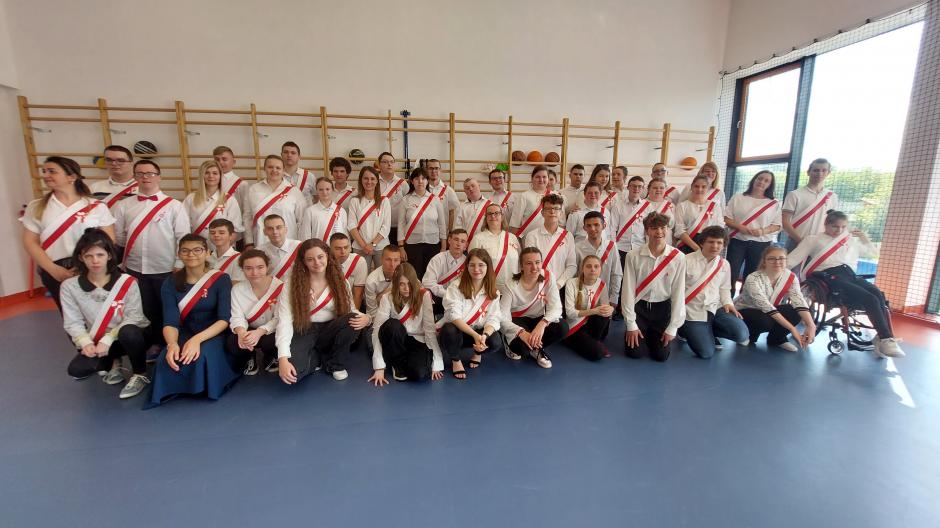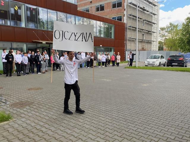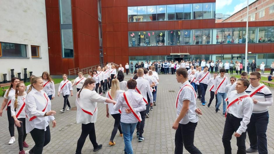 W wyjątkowy sposób w tym roku obchodziliśmy święta majowe – Dzień Flag i Rocznicę Uchwalenia Konstytucji 3 Maja. Rozpoczęliśmy uroczyście polonezem, który zatańczony został na dziedzińcu przed szkołą. Następnie odśpiewano hymn. Po hymnie odbył się pokaz słowno-muzyczny w trakcie którego przypomniane zostały najważniejsze fakty związane z uchwaleniem Konstytucji 3 Maja. Na zakończenie „posadzone” zostały wcześniej przygotowane przez uczniów biało-czerwone kwiaty.