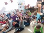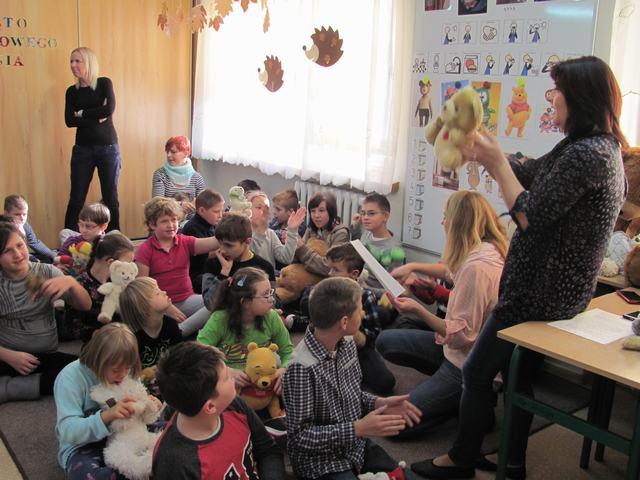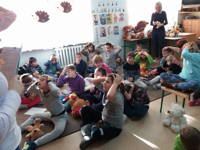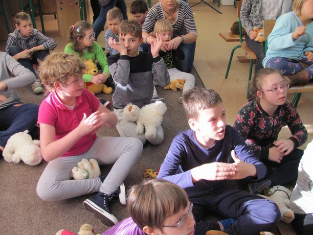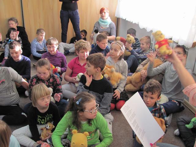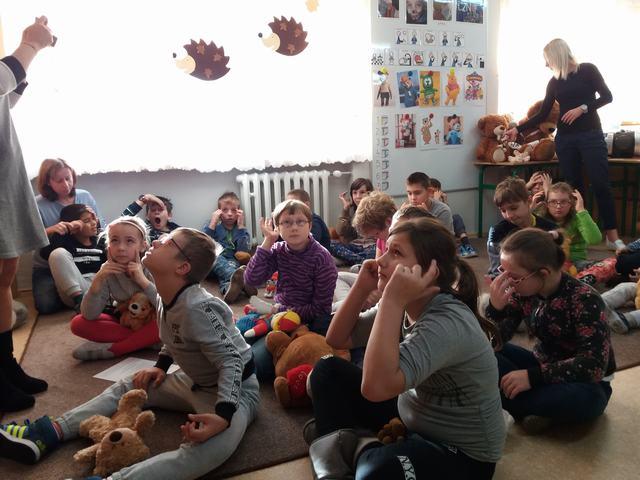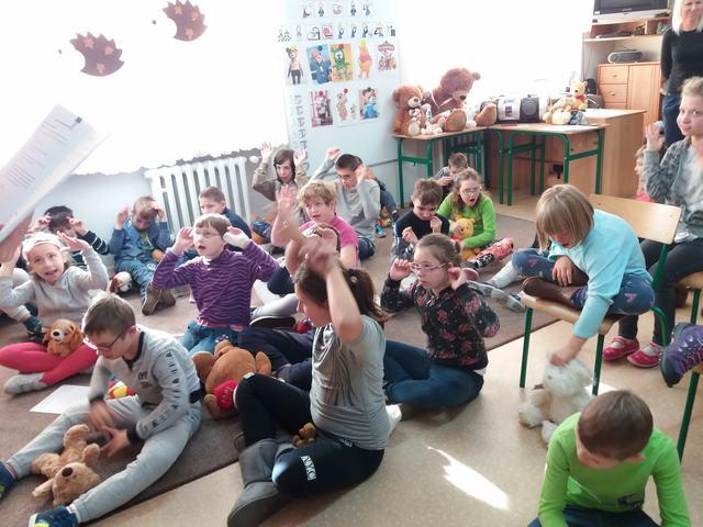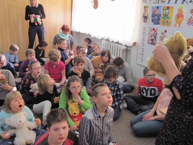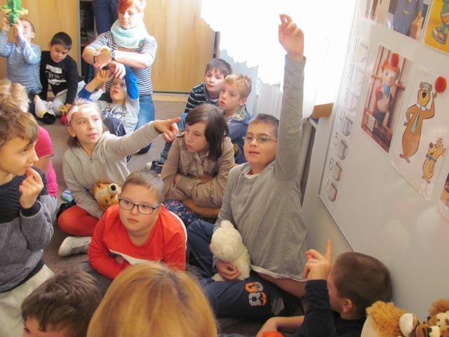 Uczniowie wzięli udział w wielu przygotowanych dla nich atrakcjach. Poznali historię pluszowego misia, wspólnie bawili się przy wierszach i piosenkach o misiach ilustrowanych gestem Makatonu i symbolami Mówika. Rozwiązywali zagadki muzyczne, rozpoznawali na ilustracjach misie – bohaterów bajek i filmów, budowali postać misia z gotowych elementów, oglądali prezentację o życiu niedźwiadków, słuchali bajki „Złotowłosa i trzy niedźwiadki” i udzielali odpowiedzi na pytania „niespodzianki”. Nie zabrakło misiowych tańców i degustacji miodku.