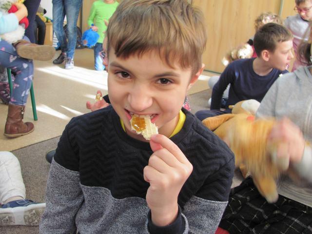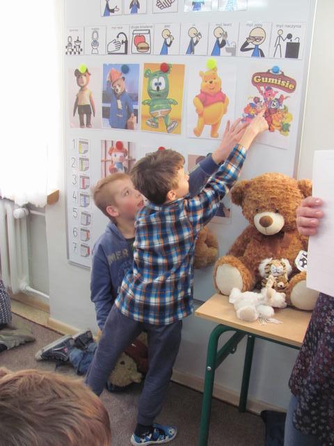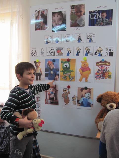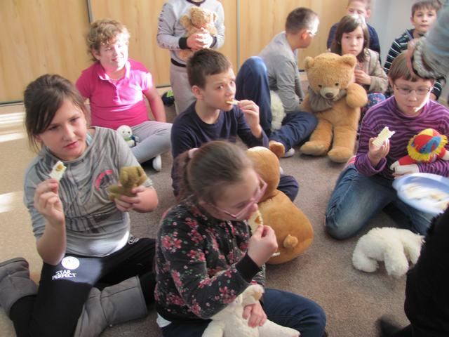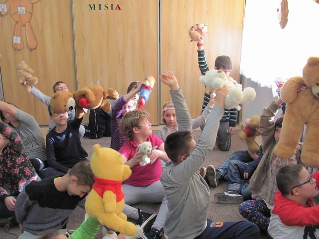 Uczniowie wzięli udział w wielu przygotowanych dla nich atrakcjach. Poznali historię pluszowego misia, wspólnie bawili się przy wierszach i piosenkach o misiach ilustrowanych gestem Makatonu i symbolami Mówika. Rozwiązywali zagadki muzyczne, rozpoznawali na ilustracjach misie – bohaterów bajek i filmów, budowali postać misia z gotowych elementów, oglądali prezentację o życiu niedźwiadków, słuchali bajki „Złotowłosa i trzy niedźwiadki” i udzielali odpowiedzi na pytania „niespodzianki”.  Nie zabrakło misiowych tańców i degustacji miodku.