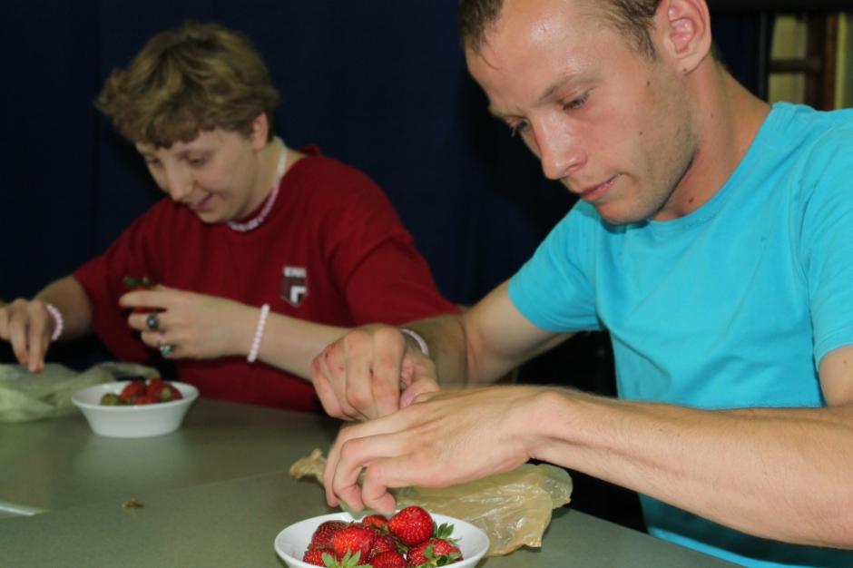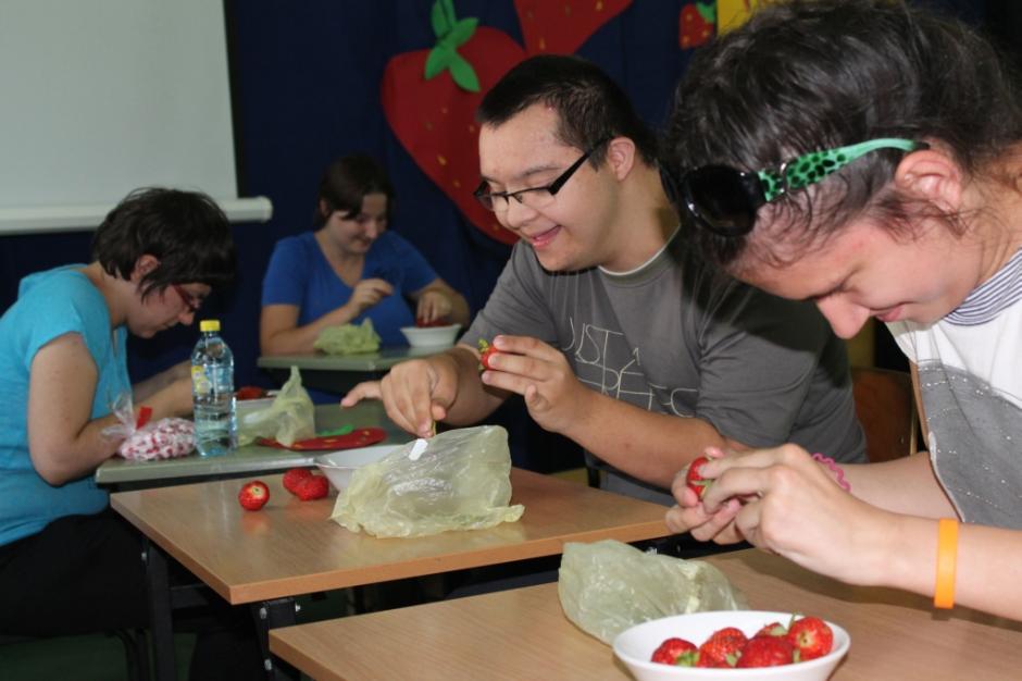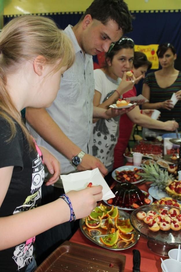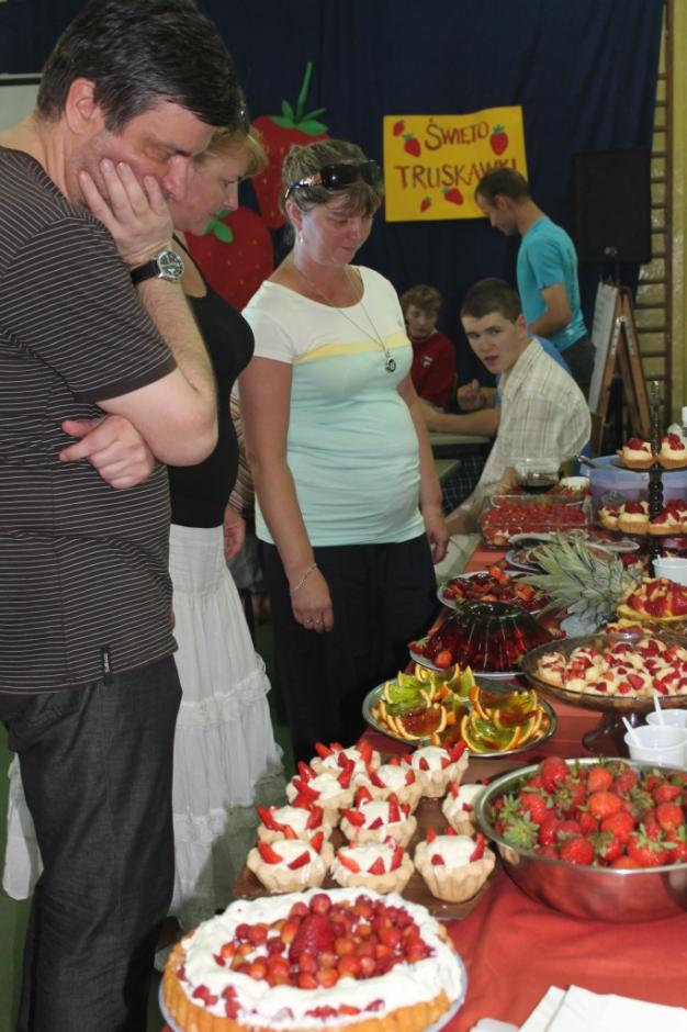 21 czerwca 2013r. w naszej szkole miało miejsce „Święto truskawki”. Z tej okazji wiele się działo. Uczniowie rozwijali wiedzę na temat pochodzenia, wartości odżywczych, sposobu uprawy i wykorzystania truskawek, mieli również okazję zmierzyć się w konkursach wiedzy o truskawce, w szybkim szypułkowaniu owoców oraz ich zjadaniu po omacku. Na końcu rozstrzygnięto konkurs na najciekawszą potrawę z truskawką w roli głównej, a wybór tej najciekawszej był naprawdę trudny, gdyż uczniowie wykazali się ogromną fantazją podczas ich przygotowywania. Konkurs z wiedzy o truskawkach wygrała klasa II a SPdP, którą reprezentowała Agata Brania. Klasa Ia SPdP wygrała natomiast przygotowując galaretkowe babeczki z truskawkami. Najlepszym jednak momentem imprezy był ten, w którym można było degustować te wspaniałe potrawy, a było w czym wybierać –  ciasteczka, ciasta, galaretki, sałatki, koktajle i inne truskawkowe łakocie. Pyszności… mniam!