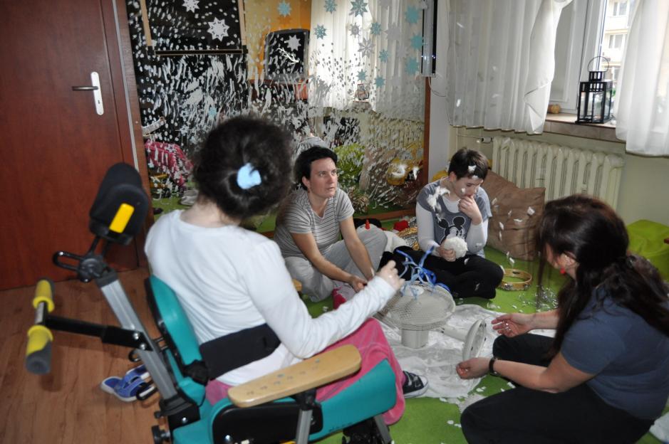 np. Sali Doświadczania Świata, Sali Integracji Sensorycznej. Podopieczni korzystają również z hydroterapii i basenu kulkowego.