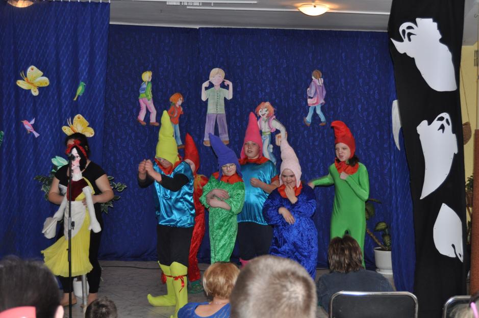 19 kwietnia odbyło się spotkanie edukacyjne w ramach realizacji programu „Szkoła promująca zdrowie”. Uczniowie obejrzeli scenki teatralne pt.: „Godzina duchów”, „Królewna Śnieżka”, „Baba Jaga u dentysty”, „Prosimy o ciszę”. Scenki dotyczyły różnych aspektów ochrony zdrowia – niebezpieczeństwa związanego ze spożywaniem nieumytych owoców i warzyw, potrzeby ruchu, dbałości
