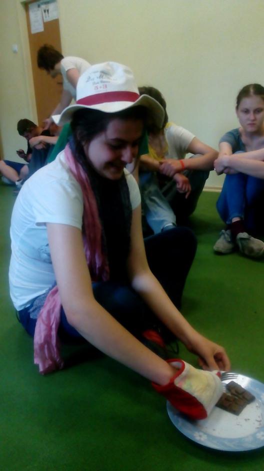 Następnie wielbiciele czekolady poddali się testowi, sprawdzającemu ich przywiązanie do tego smakołyku. W czasie tej zabawy było dużo radości.