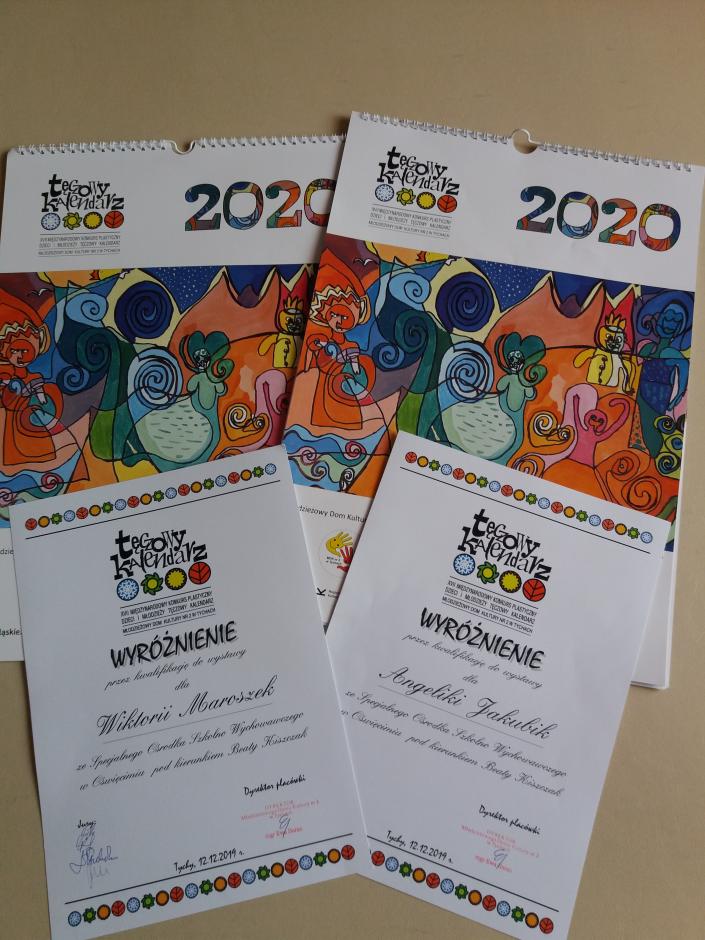 Angelika Jakubik i Wiktoria Maroszek otrzymały wyróżnienie przez kwalifikację do wystawy w XVII Międzynarodowym Konkursie Plastycznym „Tęczowy Kalendarz” organizowanym przez MDK 2 w Tychach.
