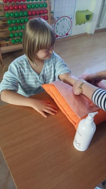 W kwietniu i maju kontynuowaliśmy realizację innowacji pedagogicznej pt. „Sprawne ręce mamy”. W celu usprawniania i wspomagania samoobsługi, umiejętności szkolnych oraz komunikacyjnych naszych uczniów, prowadzono zajęcia w oparciu o metody:
