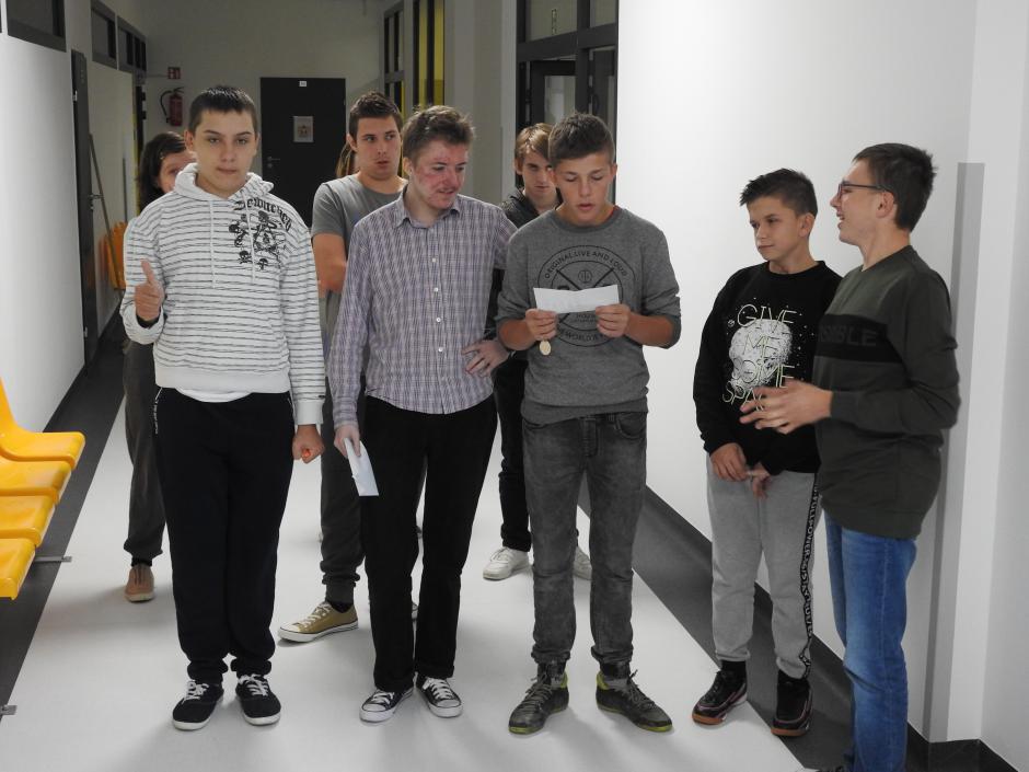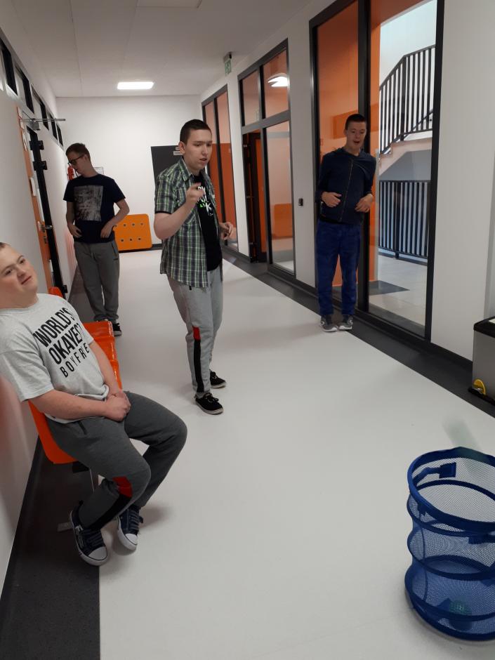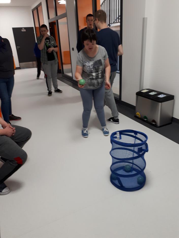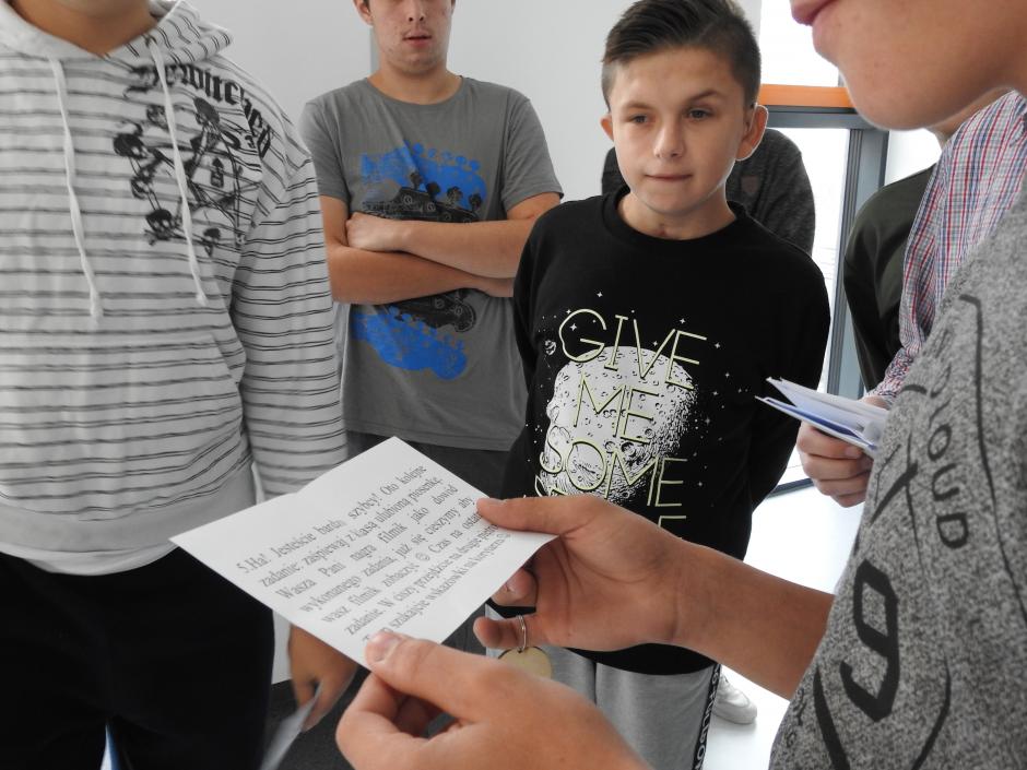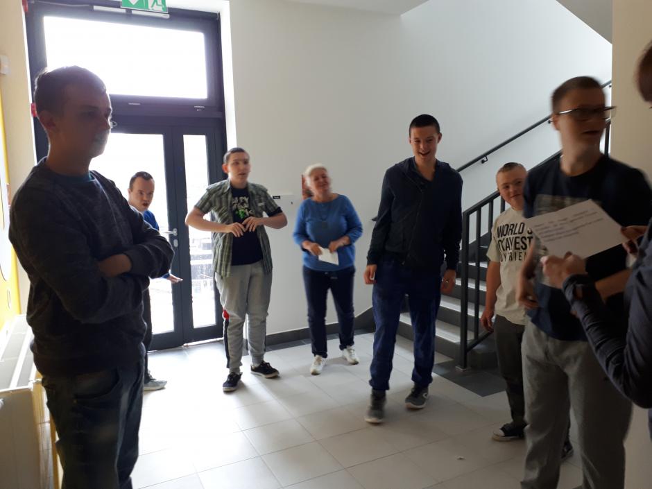W dniu 30.09 obchodziliśmy w naszej szkole Dzień Chłopaka. Nie był to zwykły dzień. Już od 9.00 rano klasy Szkoły Przysposabiającej do Pracy brały udział w grze „podchody” na terenie szkoły, co umożliwiło jeszcze raz poznać jej okazałość i poszukać wskazówek gdzie pójść dalej i jakie zadania wykonać w miejscach, do których na co dzień nie można wchodzić. Zadań było sporo. Trochę gimnastyki, trochę pisania i liczenia, wreszcie wspólne śpiewanie i nagrywanie piosenki oraz zbieranie punktów przy rzutach do kosza. Każda z czterech grup otrzymała słodkie co nieco do zjedzenia, a chłopcy naklejki Super Chłopaka i lizaki w kształcie serc. Pod okiem nauczycieli każda grupa była zaangażowana w zadania dzięki czemu ukończenie ich odbyło się na wyrównanym poziomie. Później, od 11.00 czekał na uczniów seans filmowy. Nikt nie musiał iść „na Niwę” bowiem w szkolnej, pięknej auli, tak jak w kinie, znajduje się ogromny ekran i donośne głośniki więc oglądanie filmu pt. „Cudowny chłopak” było miłym, filmowym przeżyciem, za co bardzo dziękujemy.