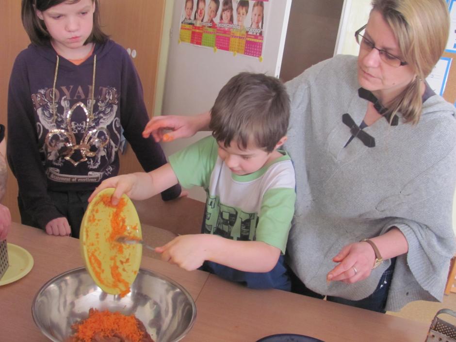 W ramach realizacji programu zdrowotnego od 25 lutego do 1 marca uczniowie szkoły podstawowej wdrażali do codziennej diety owoce i warzywa. W „pomarańczowym tygodniu” w ramach drugiego śniadania uczniowie przyrządzali sałatki, surówki i ciasta wykonane z marchewki i pomarańczy. Wszystkim bardzo smakowało!