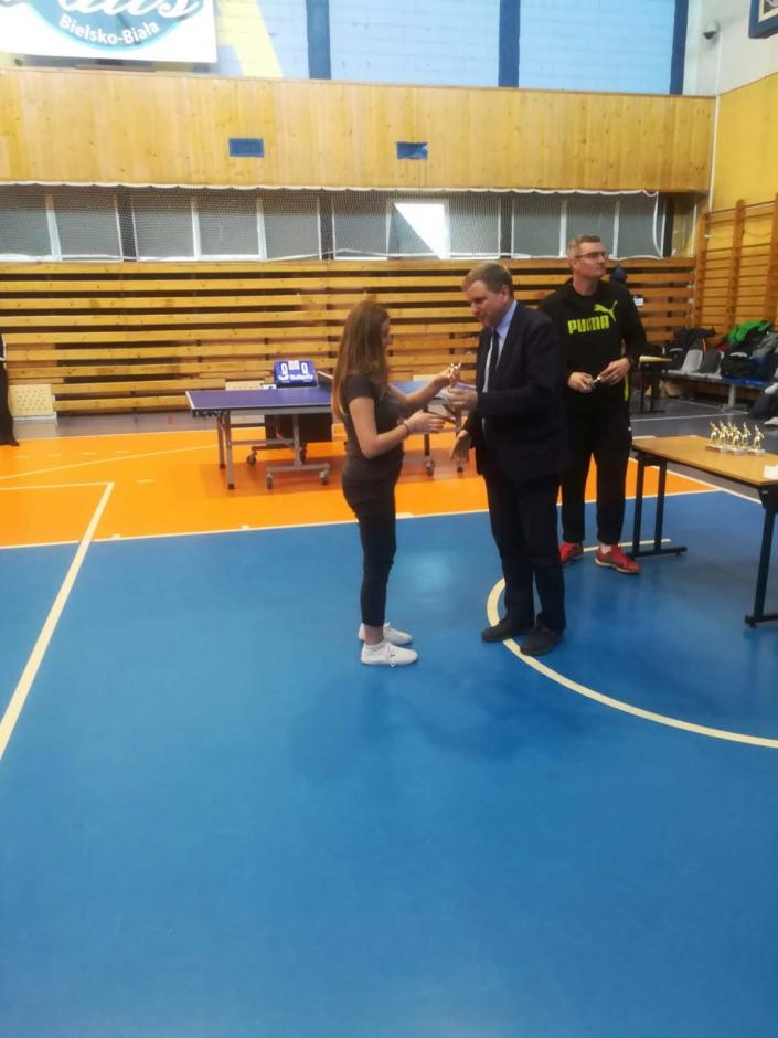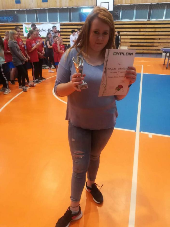 13 lutego reprezentacja Szkoły Branżowej wzięła udział w turnieju tenisa stołowego w Bielsku-Białej. Nasi zawodnicy zaprezentowali się z bardzo dobrej strony uzyskując wysokie pozycje w turnieju. W końcowej klasyfikacji na podium zawodów w kategorii dziewcząt II miejsce zdobyła Patrycja Lisińska, w kategorii chłopców III miejsce zajął Kamil Pastuszka. Gratulujemy!
