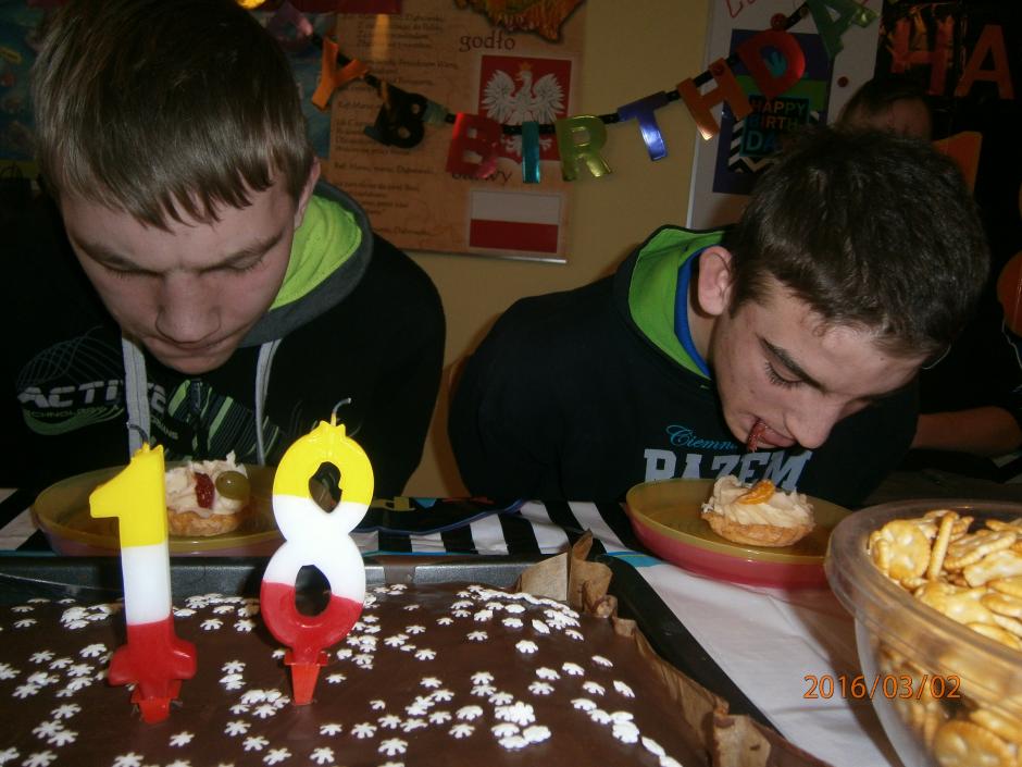 Urodziny Maćka i Łukasza ……Krzysztofa i Rafała Trzy osiemnastki i jedną szesnastą rocznicę urodzin obchodziliśmy w internacie. Było dużo życzeń, śmiechu i zabawy oraz odrobina słodkości…. 4 x 100 LAT !!! 1 2 ►