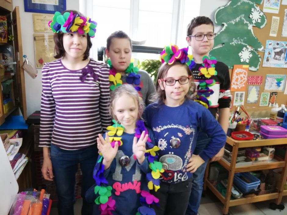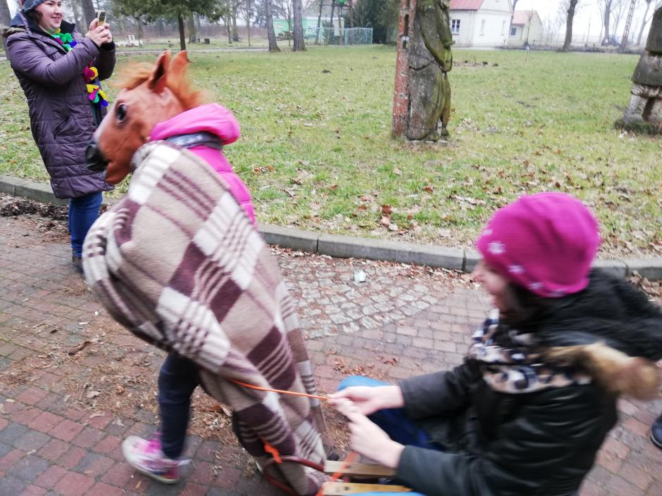 Zlot zorganizowany został pod hasłem „Zapusty czyli śladami polskich tradycji”. Wszystkie zadania dla uczestników nawiązywały do tego właśnie okresu w kalendarzu. Drugi dzień był dla nas pełen wrażeń i ciekawych ćwiczeń do wykonania; pokój zagadek, w którym musieliśmy odnaleźć ukryte i zaszyfrowane zagadki, wykonać słomianą kukłę zapustowego Grajka. Piekliśmy również chrust, sami przygotowywaliśmy sobie ozdoby na bal karnawałowy. Po zmaganiach z zadaniami, była krótka chwila przerwy na posiłek, piekliśmy kiełbaski na ognisku. To nie był koniec wrażeń, czekał nas jeszcze trening taneczny, oczywiście tańców karnawałowych! A jak karnawał, to ten najbardziej znany i kolorowy z Rio de Janeiro czyli samba! Po treningu była tylko chwilka wytchnienia przed kolacją, a po niej, już przygotowania do balu, który poprzedziły „Dziady Zapustowe” czyli korowód przebierańców. Zaopatrzeni w mapę z podanym adresem oraz pochodnię, która oświecała nam drogę, musieliśmy odnaleźć przypisany nam dom, po drodze nauczyć się zapustowej rymowanki, którą witaliśmy gospodarzy, częstując własnoręcznie zrobionym chrustem. Po wykonaniu tego zadania udaliśmy się na bal karnawałowy.