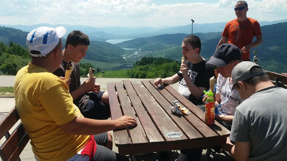 To był wyjątkowy ciepły dzień obfitujący w mnóstwo pozytywnych emocji. Na początek przyjazd do Ośrodka Hipoterapii, Dogoterapii i Rehabilitacji Ruchowej w Koziańskich Wierchach. Tam w bardzo miłej atmosferze mieliśmy możliwość jazdy na koniu o imieniu Terdek. Dużą odwagę wykazali Ci, którzy karmili konie z ręki suchym chlebem. Oj, nie było to łątwe… Były też kaczki i króliczki, które braliśmy na ręce, głaskaliśmy, mogliśmy też karmić. Radości nie było końca 🙂  Kolejnym punktem wycieczki było „zdobycie” góry Żar – czyli wyjazd wagonikiem i spacer. Przerwa na lody i powrót wagonikiem w dół. W dalszą drogę udaliśmy do Pewli Ślemieńskiej, gdzie przebywali nasi koledzy wraz z nauczycielami na wycieczce szkolnej. Wspólnie zjedzony obiad, chwila relaksu i… niestety powrót do domu.