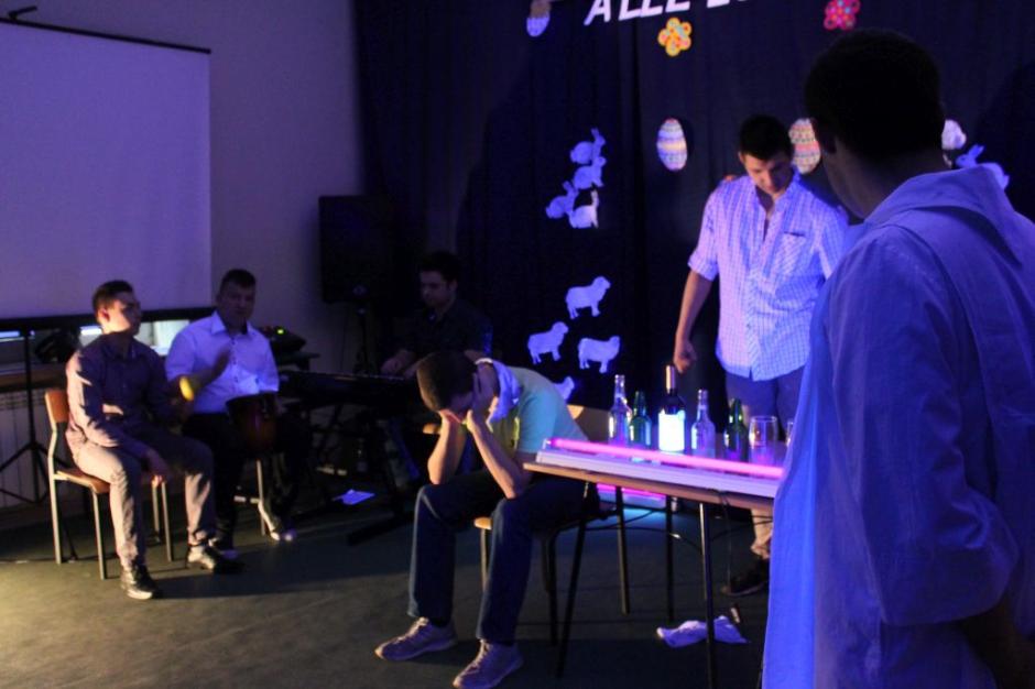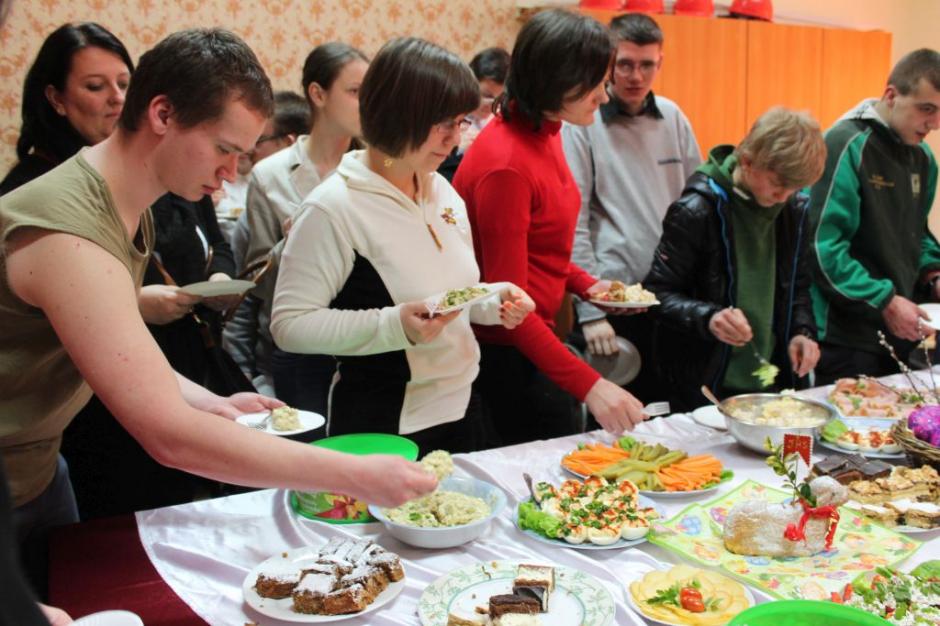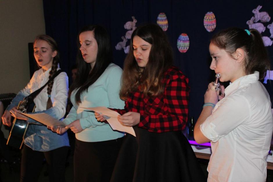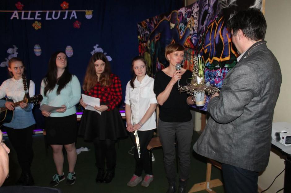 23 marca w naszej szkole obchodziliśmy apel świąteczny z okazji zbliżających się Świąt Wielkanocnych. W tym dniu grupa uczniów ze szkoły zawodowej zaprezentowała pantomimę. Opowiadała ona o szukaniu szczęścia, własnego miejsca w świecie, oraz o walce dobra ze złem. Po występie uczniów, publiczność obejrzała prezentację multimedialną, która przypomniała polskie zwyczaje i symbole wielkanocne. W tym dniu odwiedzili naszą szkołę szczególni goście. Byli to Państwo Wiktorowie wspierający działania Ośrodka oraz grupa młodzieży z Gminnego Gimnazjum w Rajsku wraz z Panią Marzeną Wilk-Grabowską. Uczennice z tej szkoły zaprezentowały swój program artystyczny. Po występach, uczniowie i nauczyciele rozkoszowali się smakiem potraw świątecznych, przygotowanych specjalnie na ten dzień przez uczniów naszej szkoły pod okiem nauczycieli. Dzień świąteczny zwieńczył seans filmu „Opowieści z Narnii”.