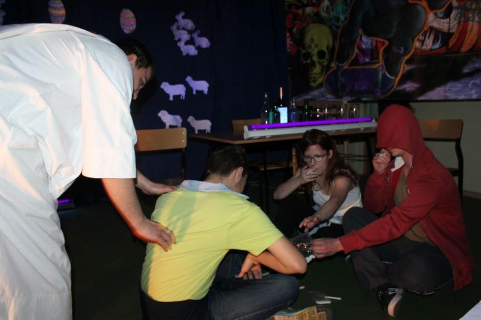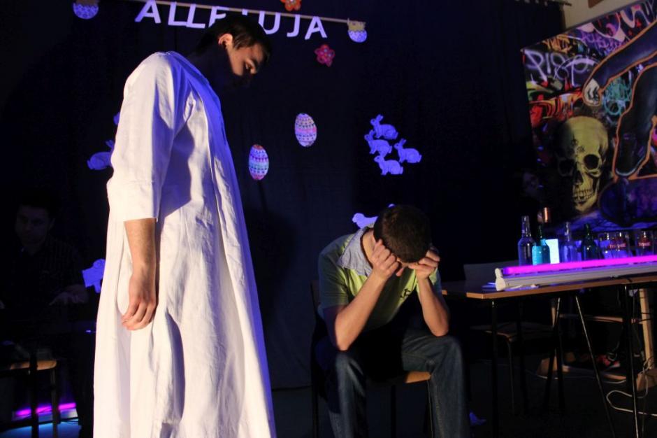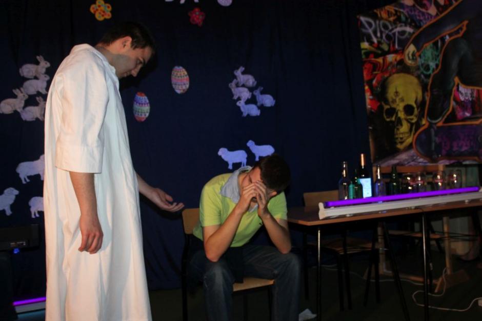 23 marca w naszej szkole obchodziliśmy apel świąteczny z okazji zbliżających się Świąt Wielkanocnych. W tym dniu grupa uczniów ze szkoły zawodowej zaprezentowała pantomimę. Opowiadała ona o szukaniu szczęścia, własnego miejsca w świecie, oraz o walce dobra ze złem. Po występie uczniów, publiczność obejrzała prezentację multimedialną, która przypomniała polskie zwyczaje i symbole wielkanocne. W tym dniu odwiedzili naszą szkołę szczególni goście. Byli to Państwo Wiktorowie wspierający działania Ośrodka oraz grupa młodzieży z Gminnego Gimnazjum w Rajsku wraz z Panią Marzeną Wilk-Grabowską. Uczennice z tej szkoły zaprezentowały swój program artystyczny. Po występach, uczniowie i nauczyciele rozkoszowali się smakiem potraw świątecznych, przygotowanych specjalnie na ten dzień przez uczniów naszej szkoły pod okiem nauczycieli. Dzień świąteczny zwieńczył seans filmu „Opowieści z Narnii”.