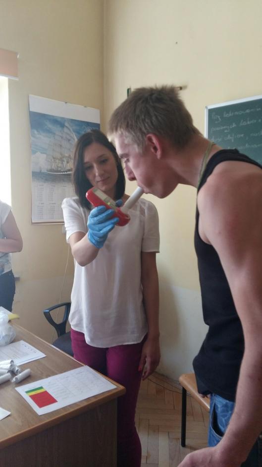 W ramach Szkolnego Tygodnia Walki z Uzależnieniami odbyły się  warsztaty, podczas których dowiedzieliśmy się  o szkodliwości palenia, także e-papierosów, porozmawialiśmy także o sposobach wychodzenia z nałogów. Panie z Powiatowej Stacji Sanitarno-Epidemiologicznej w Oświęcimiu umożliwiły nam pomiar tlenku węgla w wydychanym powietrzu, co pomogło ocenić stopień zagrożenia skutkami palenia, przynosząc ulgę lub chwilę refleksji…, a może czas zrezygnować  z  tego  nałogu.