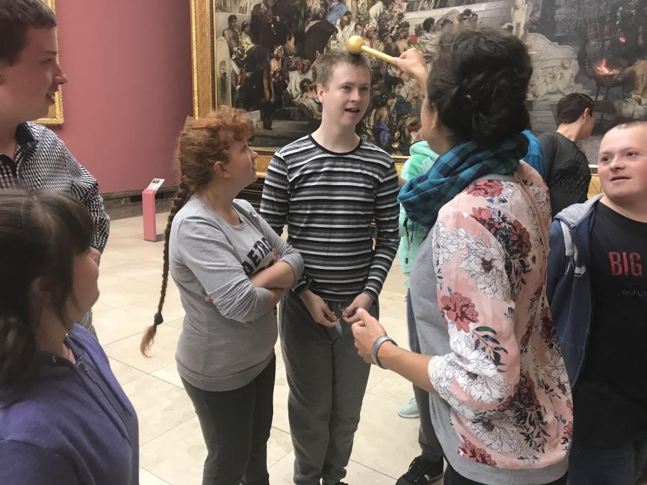 W Galerii Sztuki Polskiej XIX w. Sukiennicach podziwialiśmy dzieła wybitnych malarzy. Poznaliśmy narzędzia i techniki malarskie. Dzięki rekwizytom wcielaliśmy się w postacie króla Augusta Poniatowskiego i Stańczyka.
