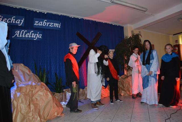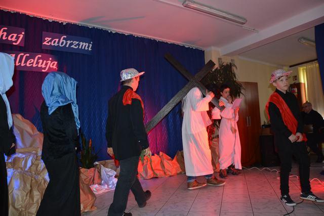 12 kwietnia 2017 r. w naszej szkole odbyła się uroczysta akademia z okazji Świąt Wielkanocnych. Uczniowie Szkoły Podstawowej i Gimnazjum przygotowali przedstawienie „Misterium Męki Pańskiej”, w którym zaprezentowali religijne znaczenie śmierci i zmartwychwstania Chrystusa. W trakcie przedstawienia zaśpiewane zostały pieśni wielkopostne, które wprowadziły wszystkich w ten szczególny czas Wielkiego Tygodnia.