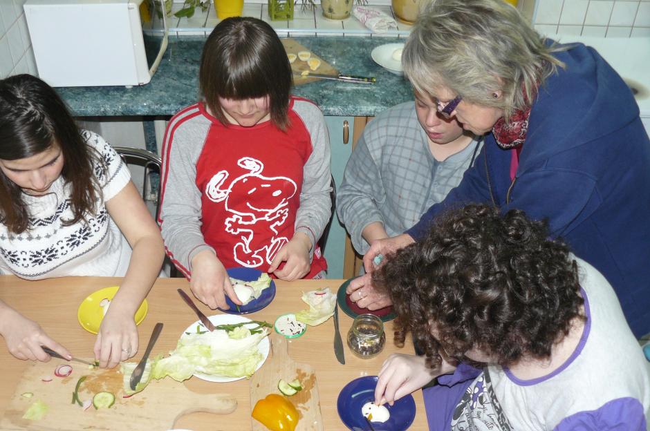 Za oknem zimno i biało, a u nas w kuchni wiosna! Wychowankowie z grup młodszych przygotowali wiosenne potrawy z jajek.